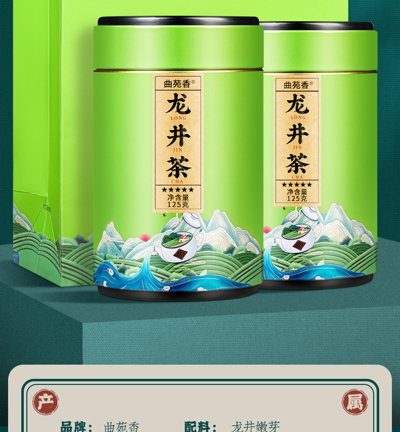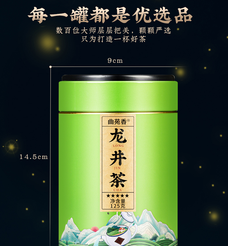 曲苑香 2024新杭州龙井茶绿茶 125g 1罐