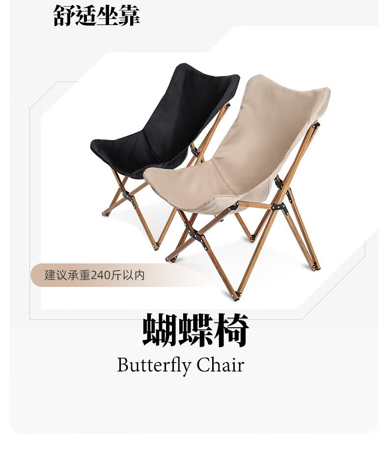 三极户外 户外铝合金克米特折叠椅木纹铝管露营椅 tp8876 黑色 53*67.5*80cm 1把