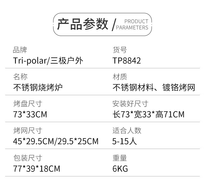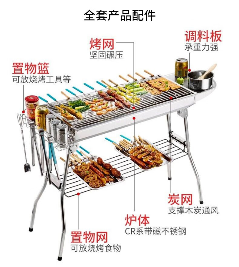 三极户外 不锈钢烧烤架 TP8842 全套烧烤架 1套