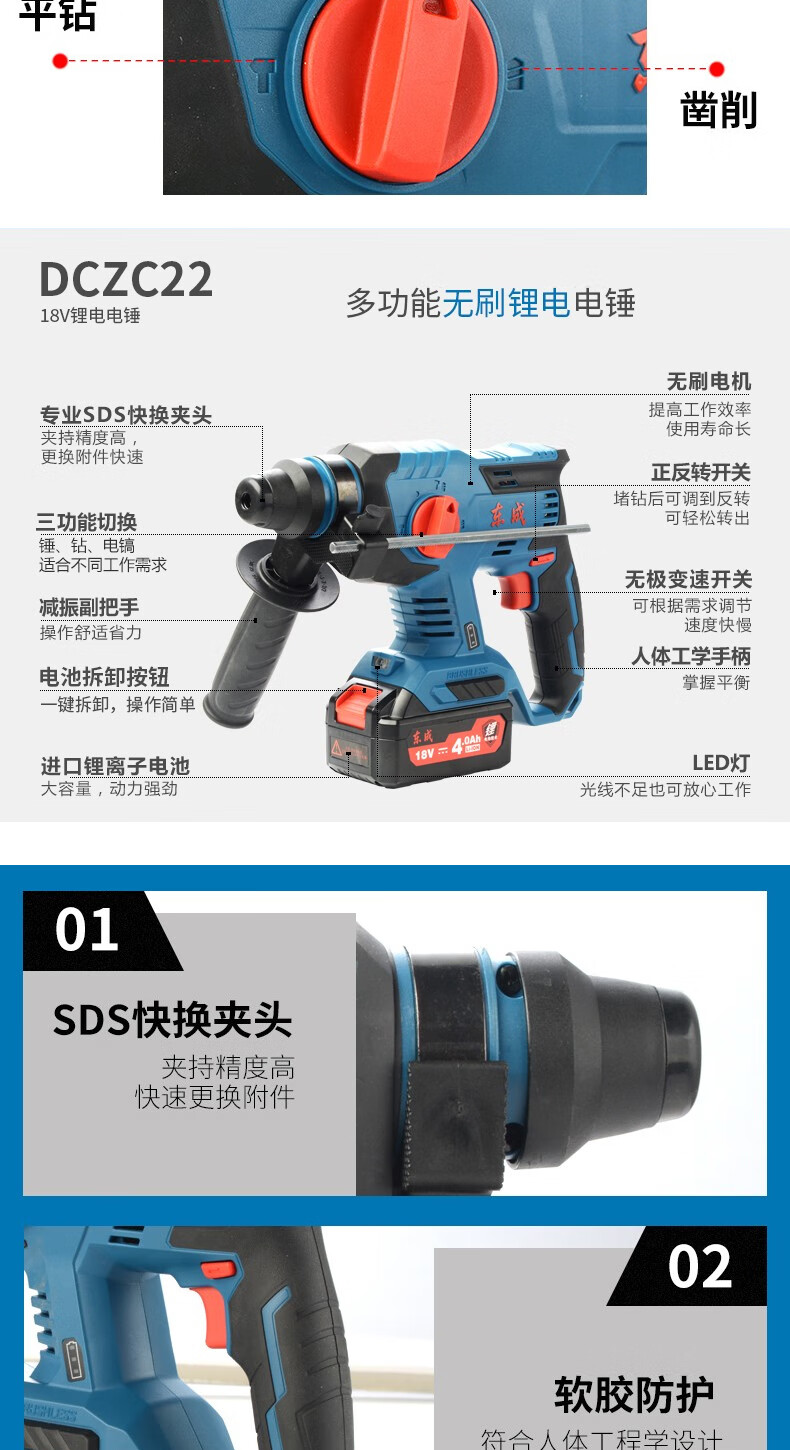 东成 充电式无刷电锤 DCZC22B 20V 4.0Ah 两电一充 1台