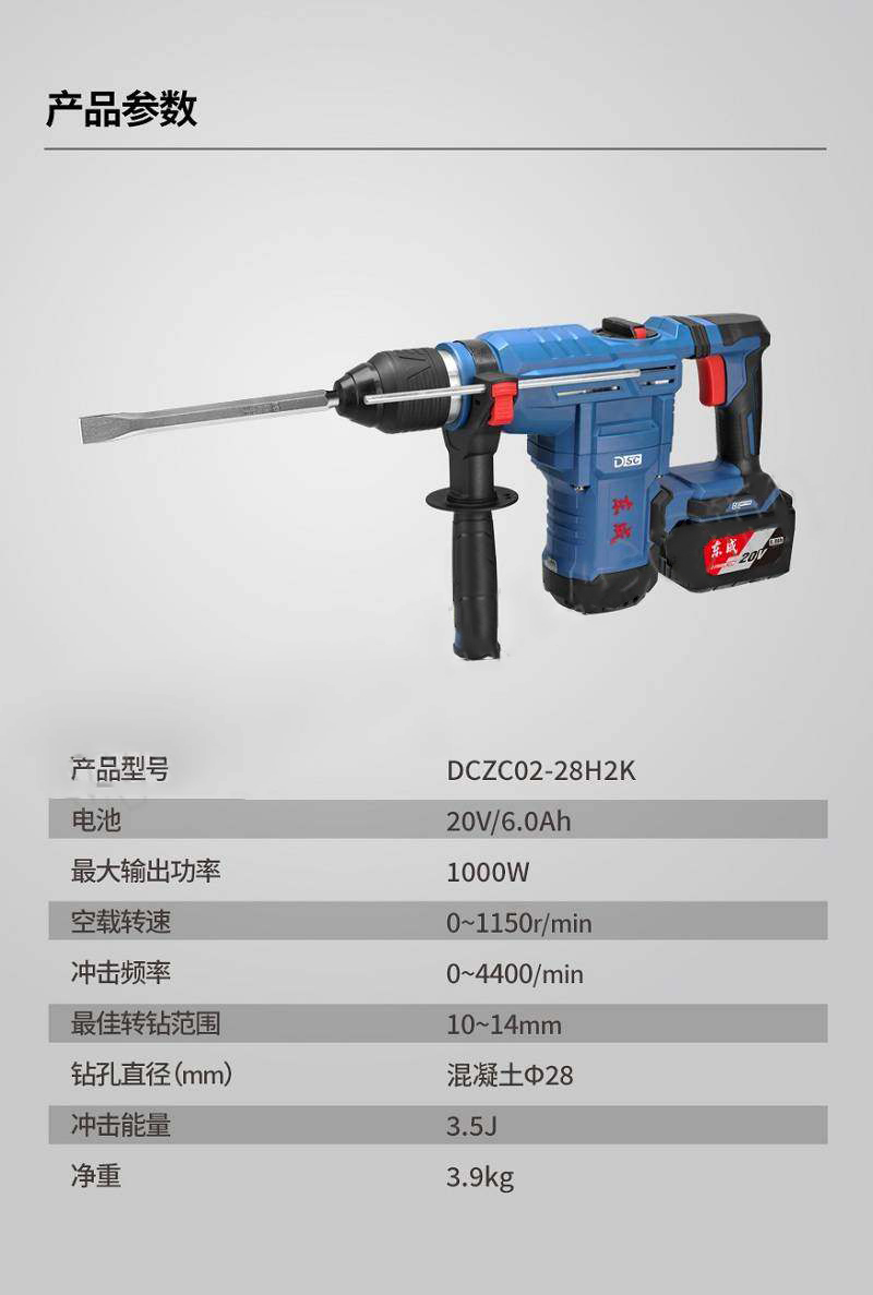 东成 充电式无刷电锤 DCZC02-28H2K 20V 4.0Ah 两电一充 1台