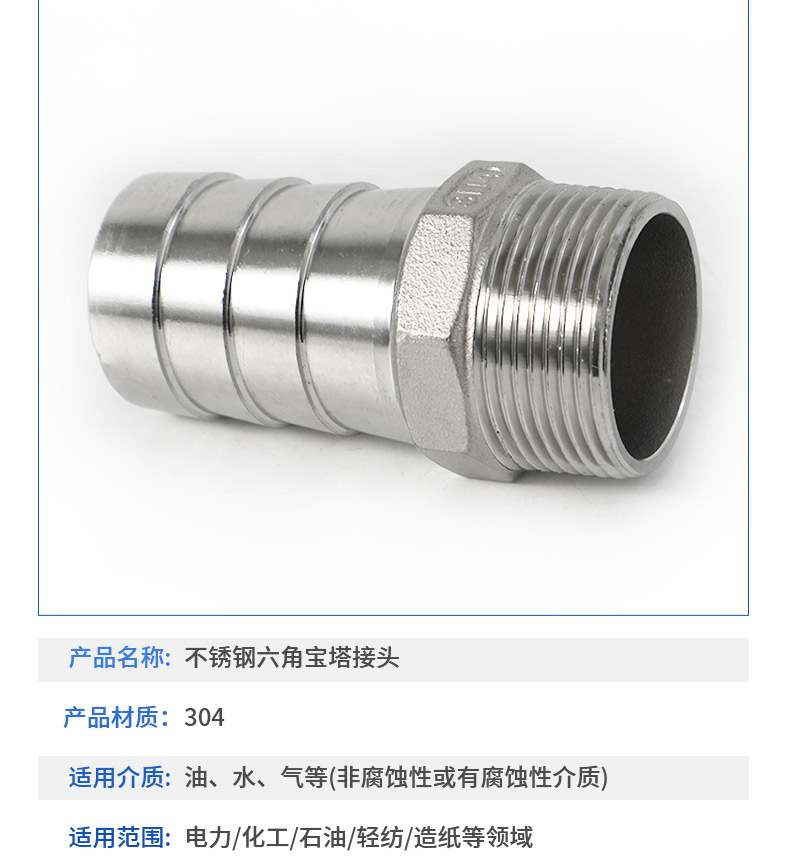 亚仑 304不锈钢外丝宝塔接头 1寸 DN25×φ26mm 1个