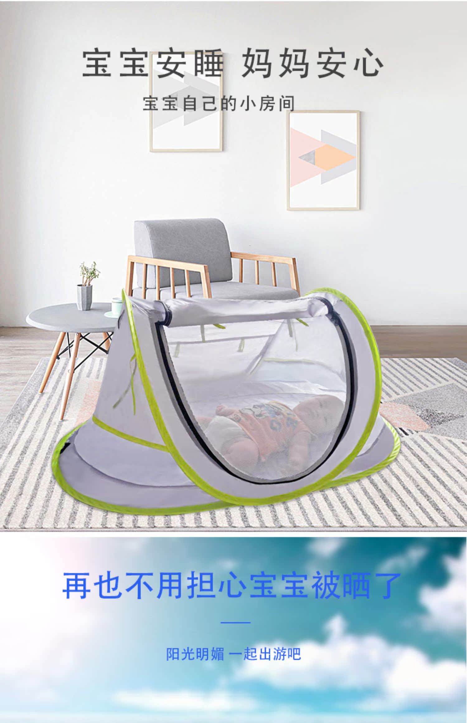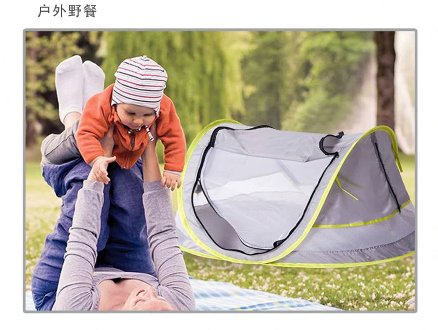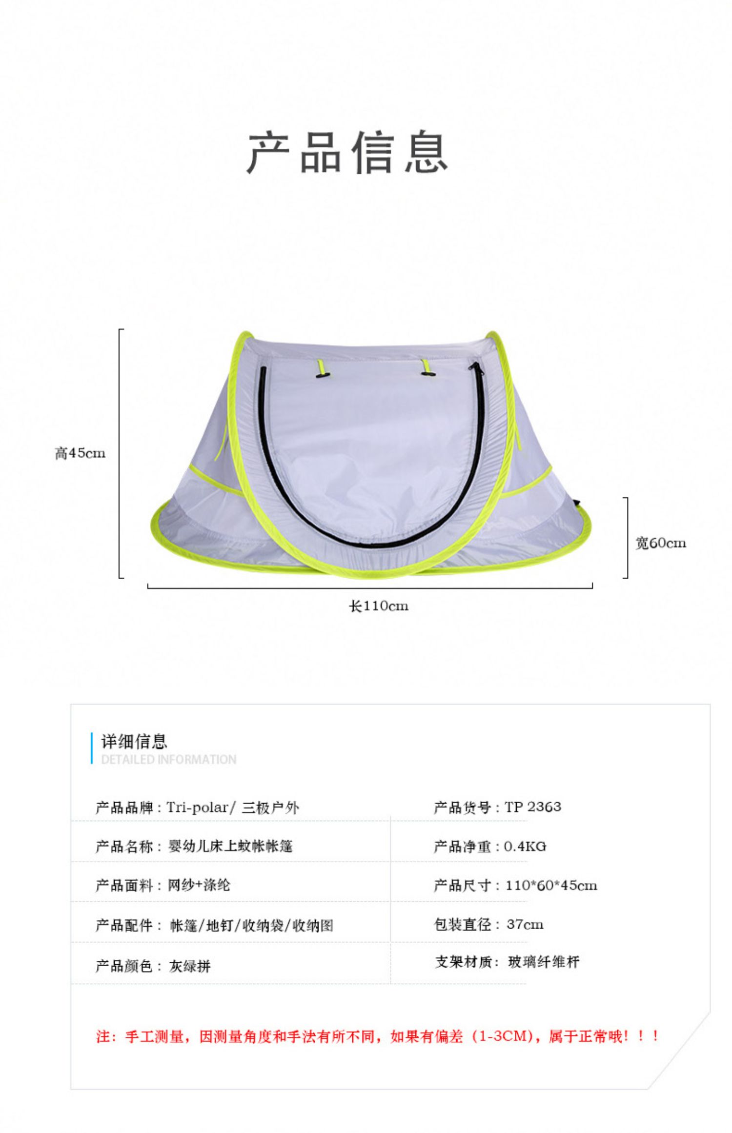 三极户外 婴儿蚊帐罩 TP2363 灰绿拼色 1个