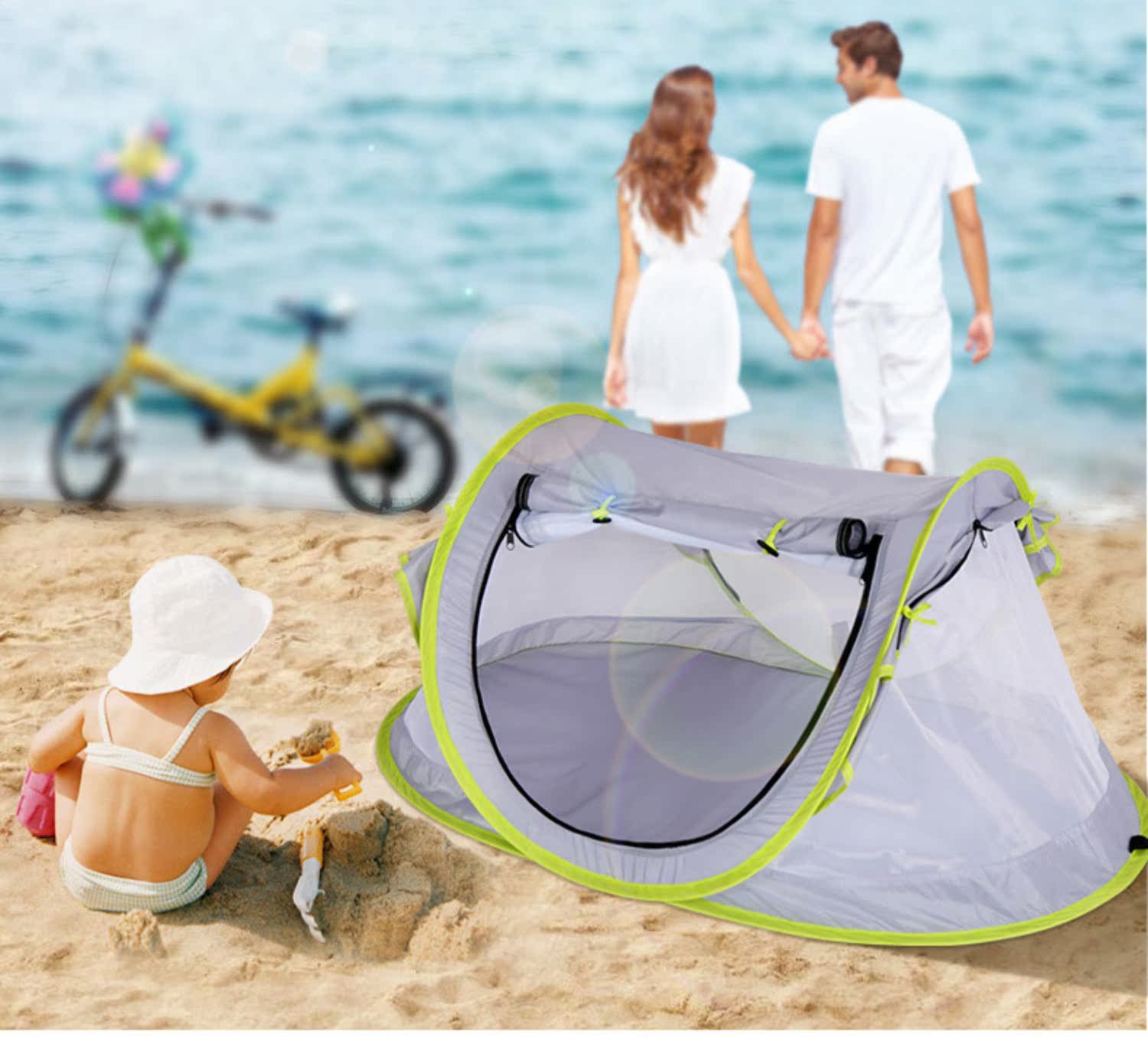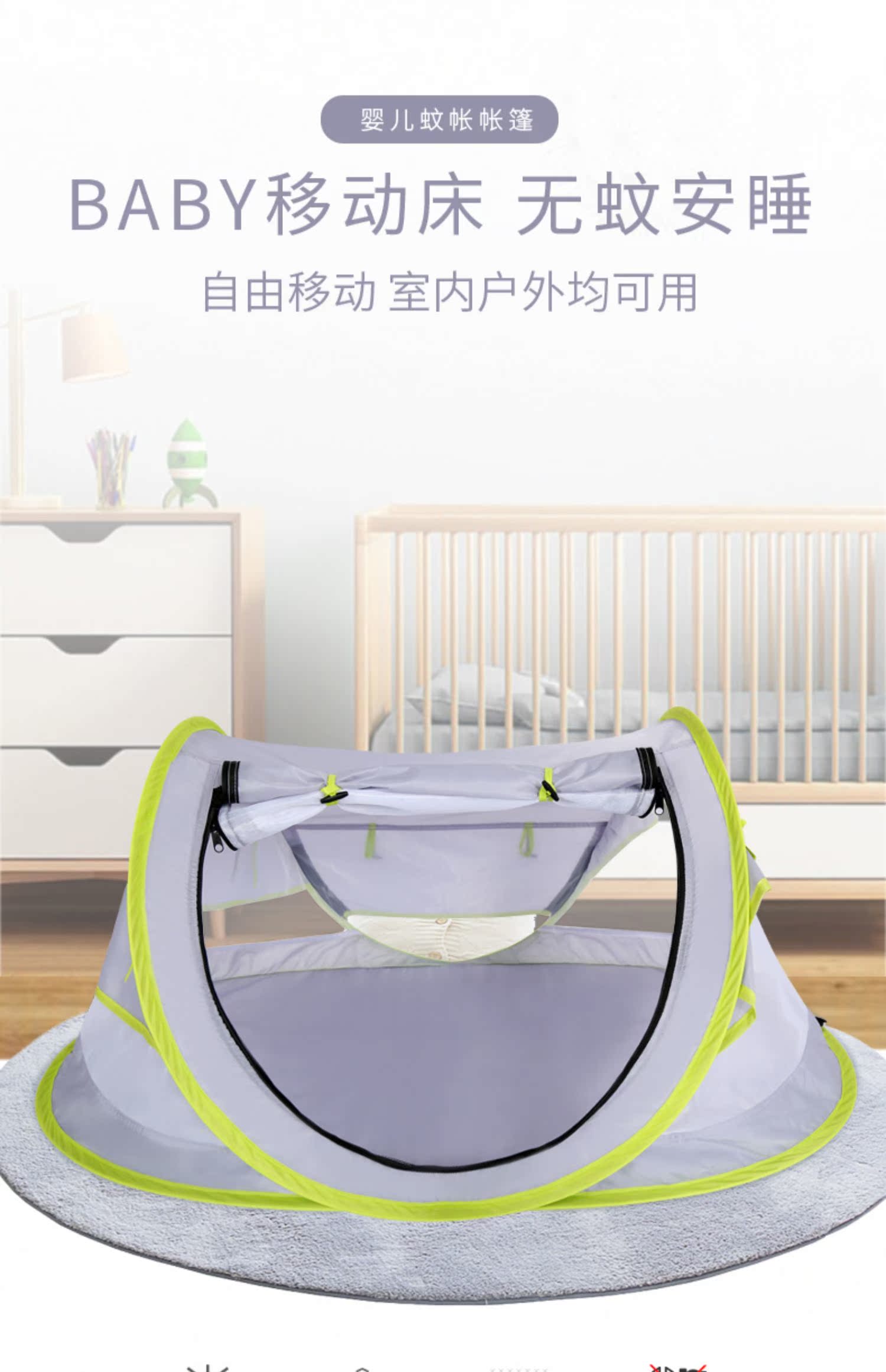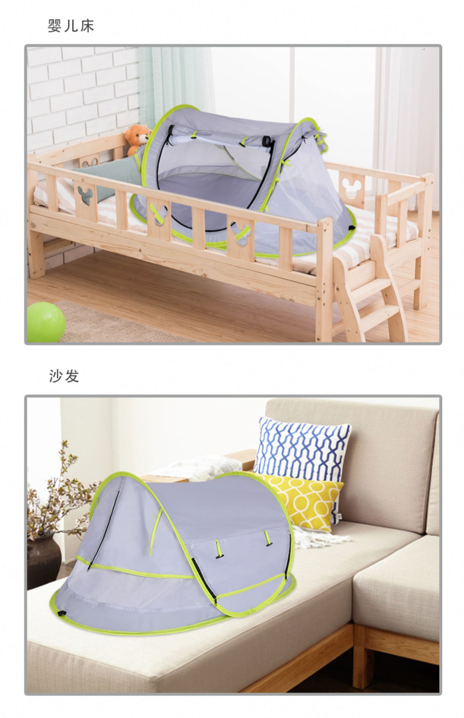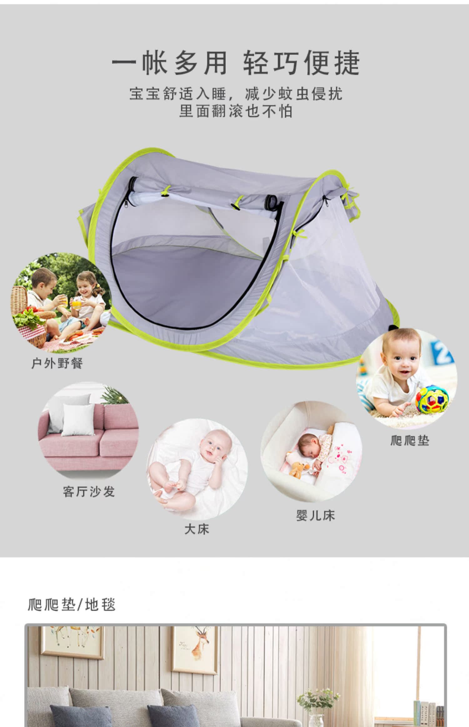 三极户外 婴儿蚊帐罩 TP2363 灰绿拼色 1个