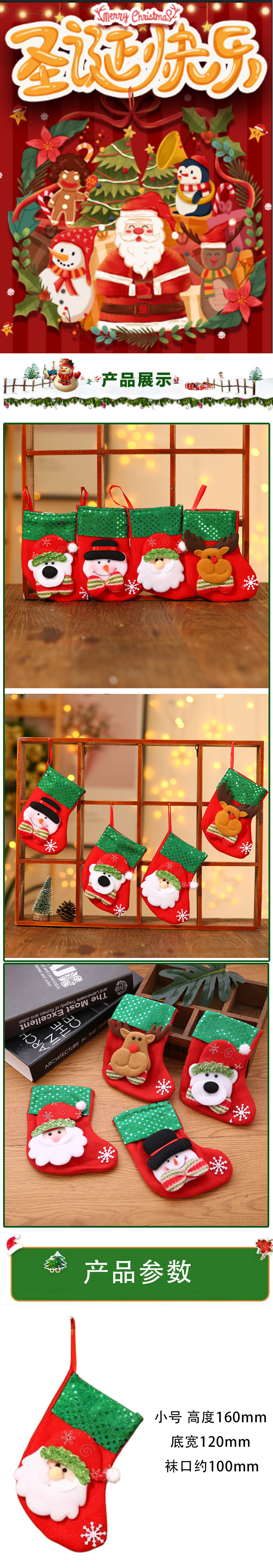 海斯迪克 圣诞节装饰圣诞袜 XRSD-052 小号亮片袜【老人】 高度160mm 底宽120mm 袜口约100mm 1个