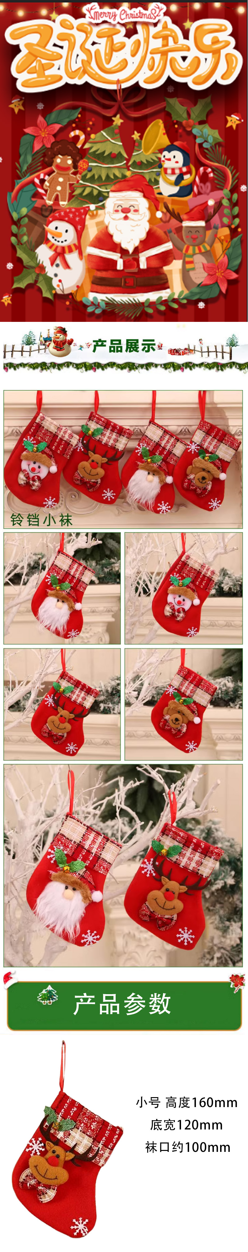 海斯迪克 圣诞节装饰圣诞袜 XRSD-062 小号铃铛袜【小鹿】 高度160mm 底宽120mm 袜口约100mm 1个