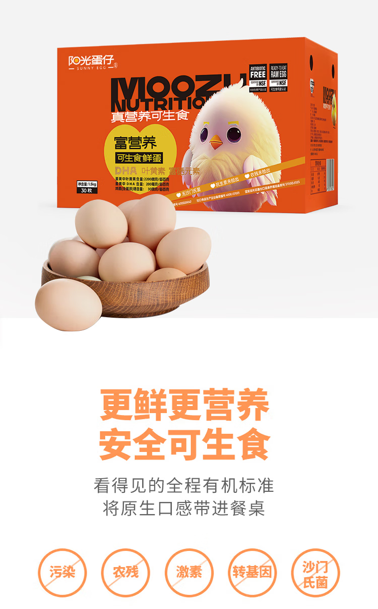 • 商品名称:阳光蛋仔 可生食复合营养鲜鸡蛋
