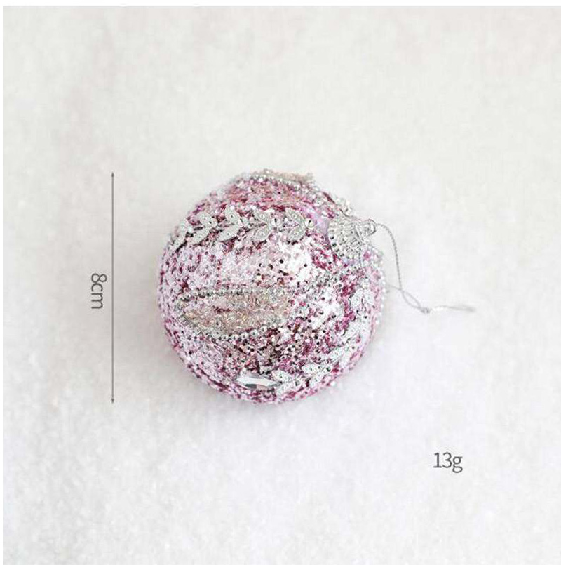 海斯迪克 圣诞树挂件 XRSD-125 粉色花边球 80×80mm 1个