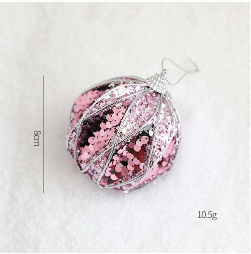 海斯迪克 圣诞树挂件 XRSD-126 粉色亮片球 80×80mm 1个