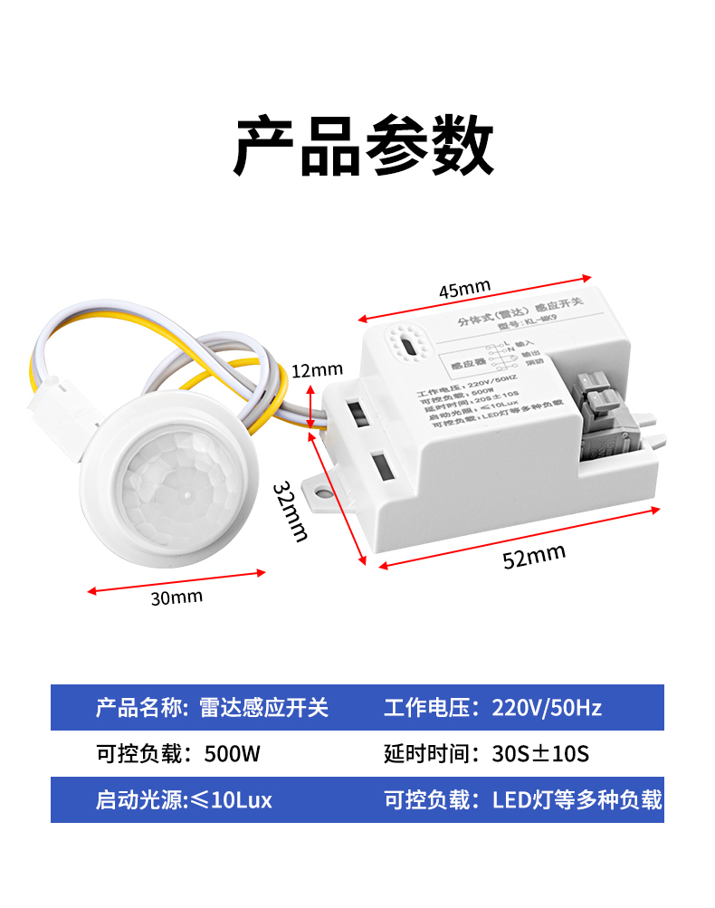 海斯迪克 智能人体感应器 hsxy093 雷达模块【可调】-500W 1个