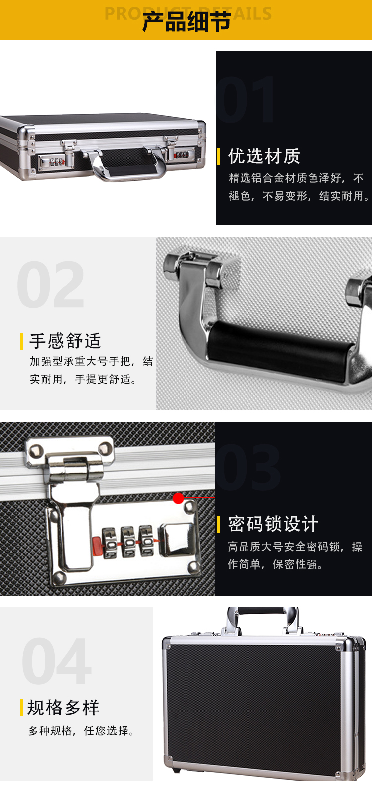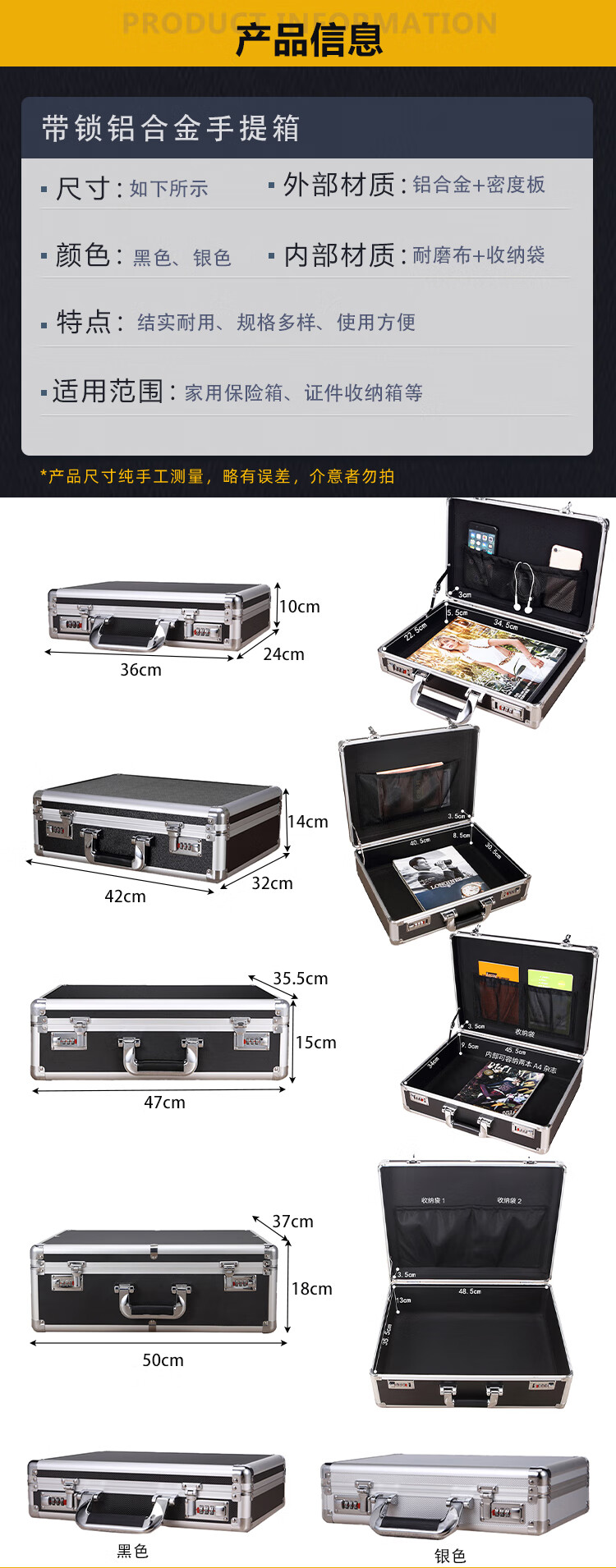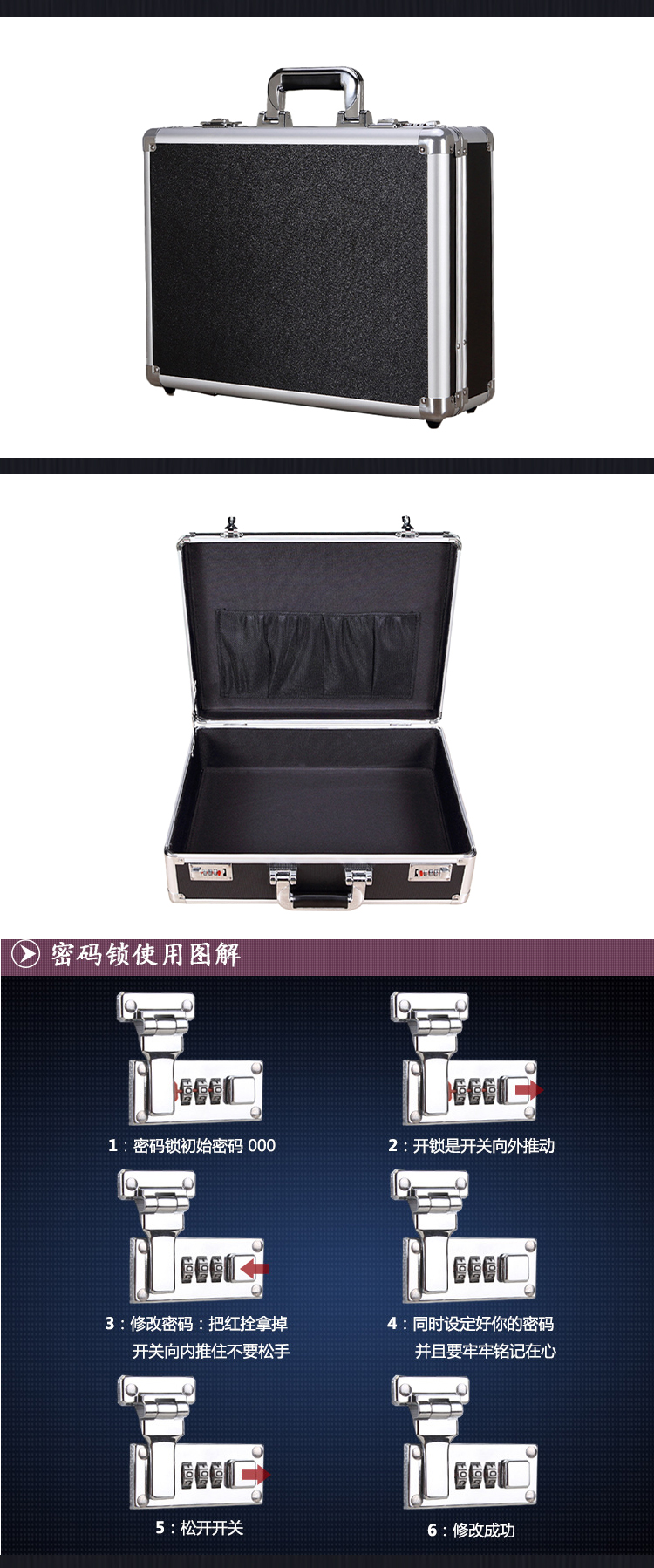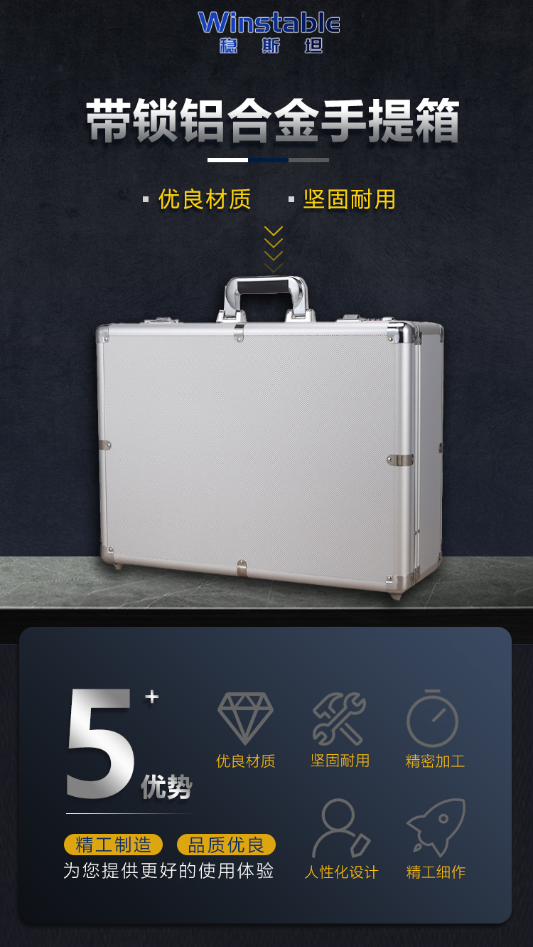 稳斯坦 带锁铝合金手提箱 W7339 黑色空箱 50*37*18cm 1个
