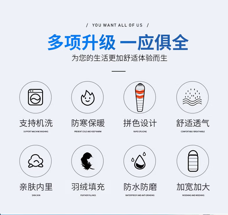 三极户外 妈咪式羽丝睡袋 TP2926 橙色 羽丝1.5kg 210*80cm 1个