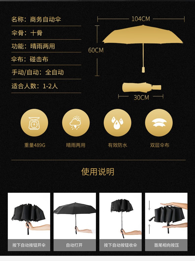 三极户外 全自动雨伞 TP7011 黑色 高60cm 直径104cm 1把
