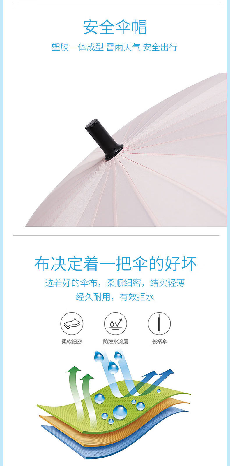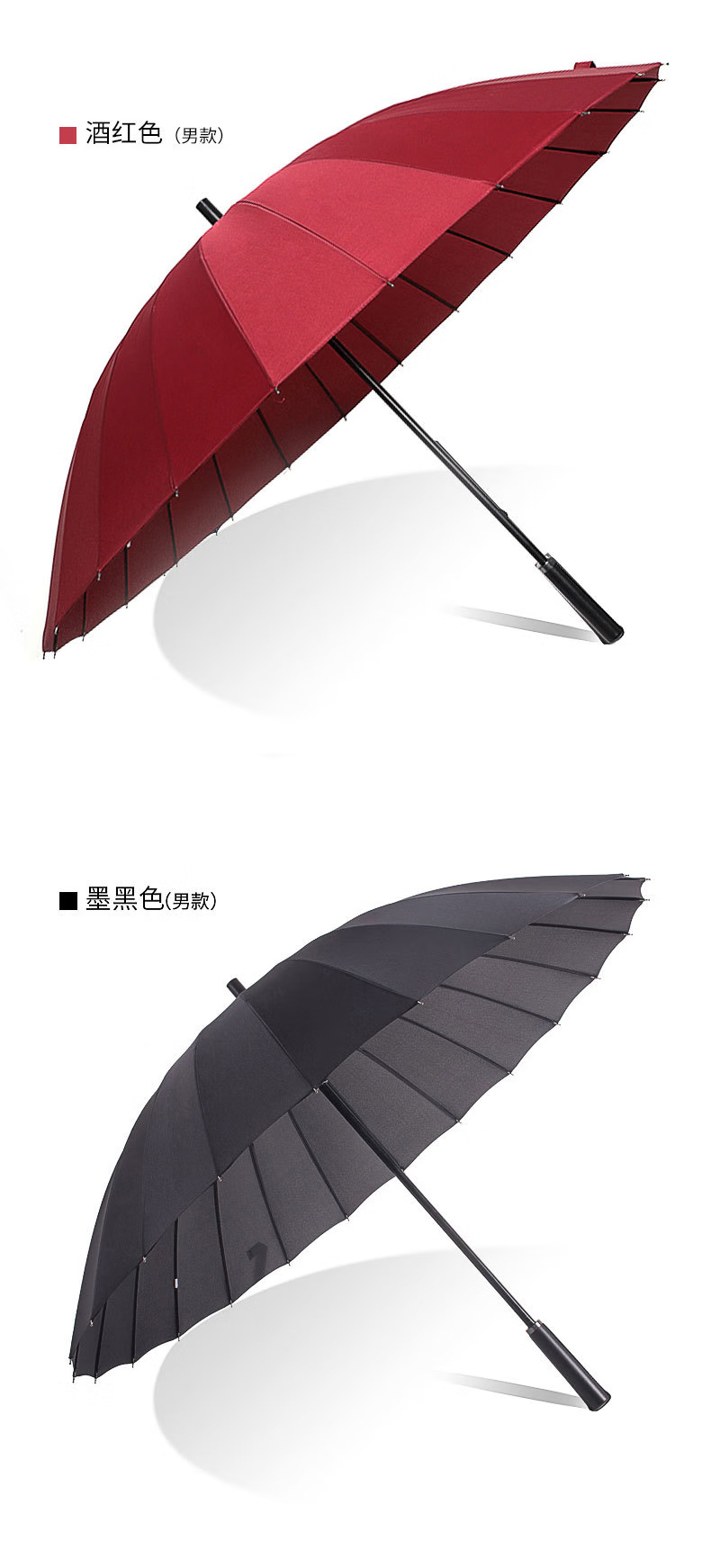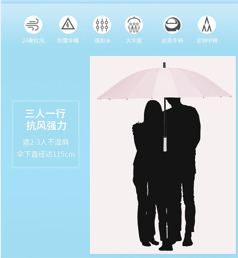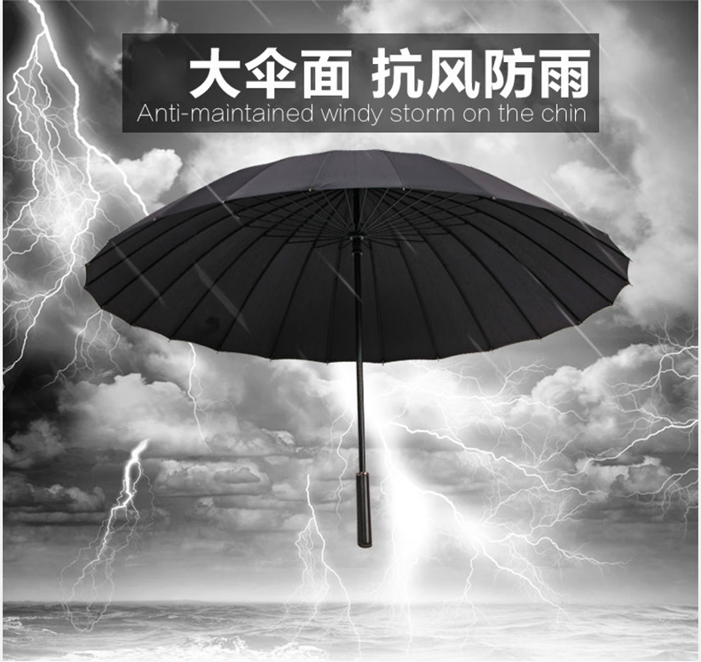 三极户外 24骨长柄雨伞 TP7017 黑色 高86cm 直径115cm 1把