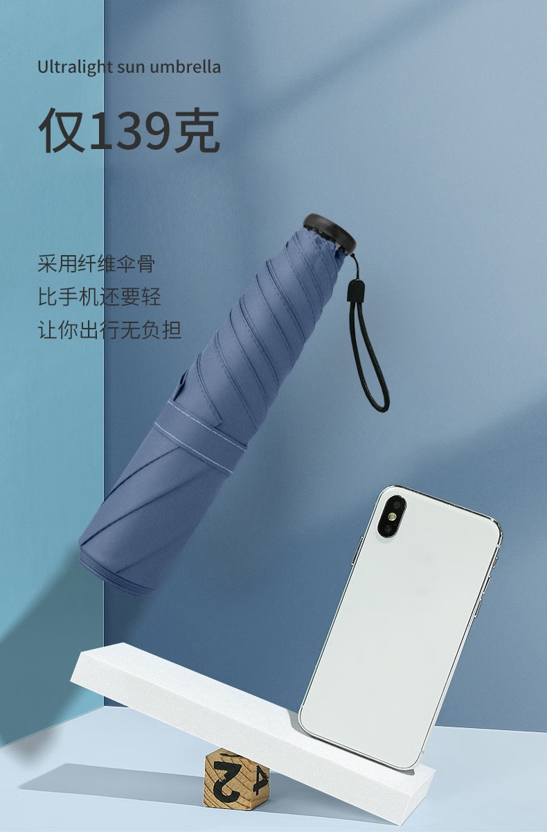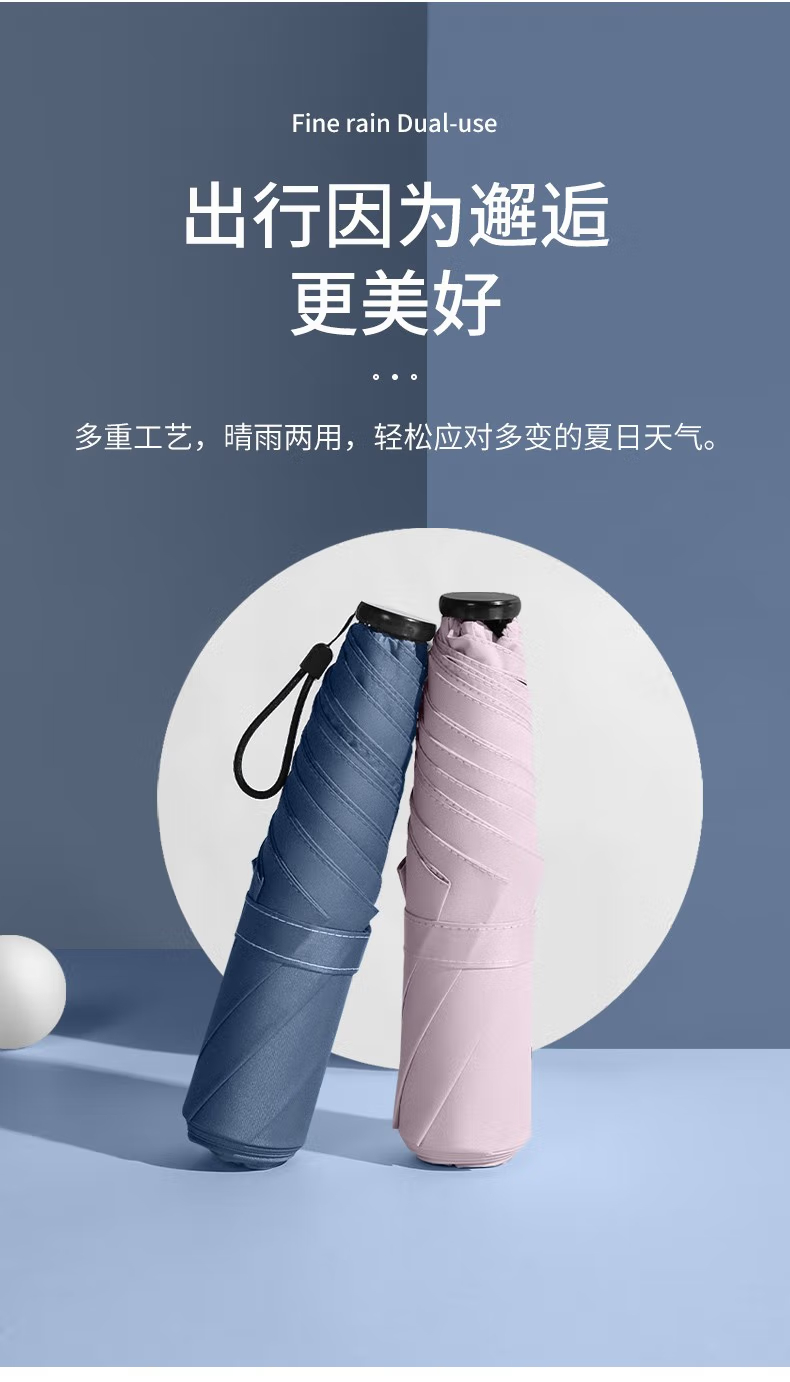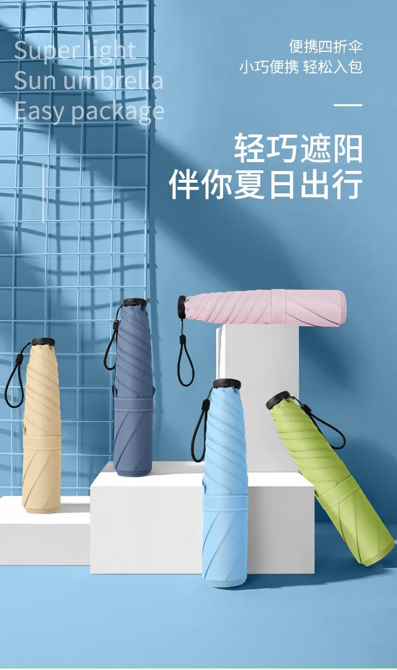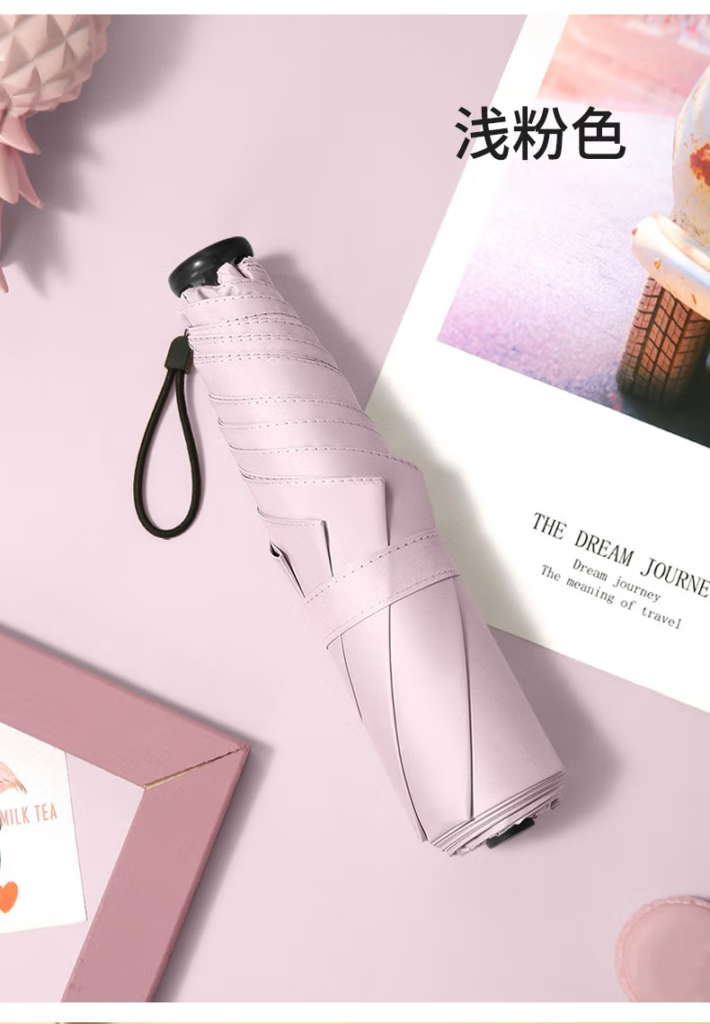 三极户外 6骨四折伞 TP7030 浅粉色 高51cm 直径88cm 1把