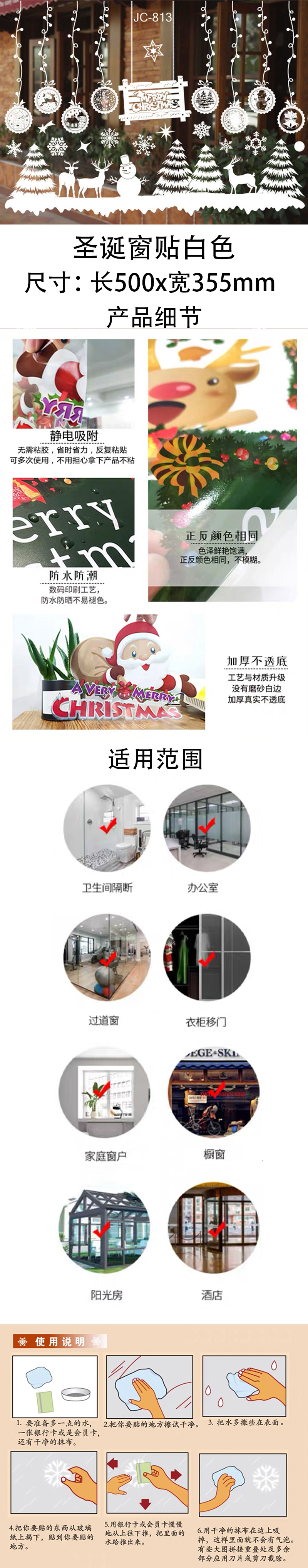 海斯迪克 圣诞窗贴 hsxy102 500×355mm 白色813 1个