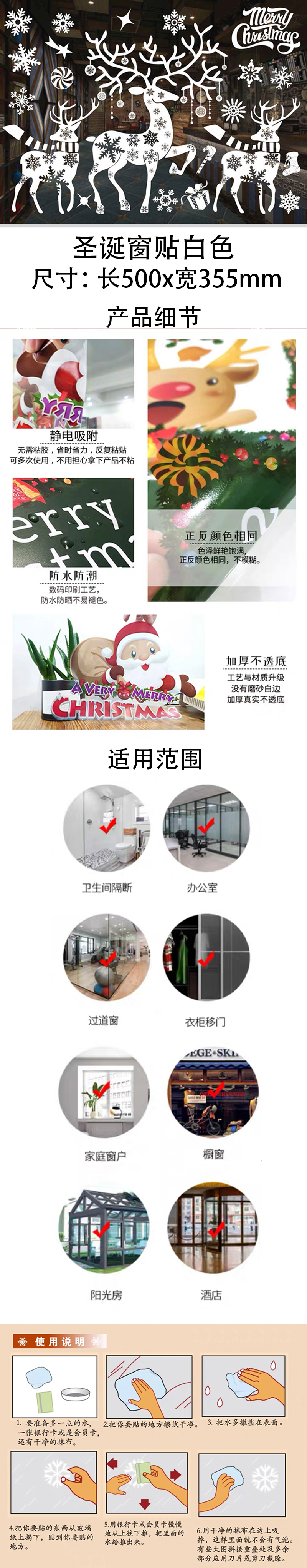 海斯迪克 圣诞窗贴 hsxy102 500×355mm 白色A57 1个