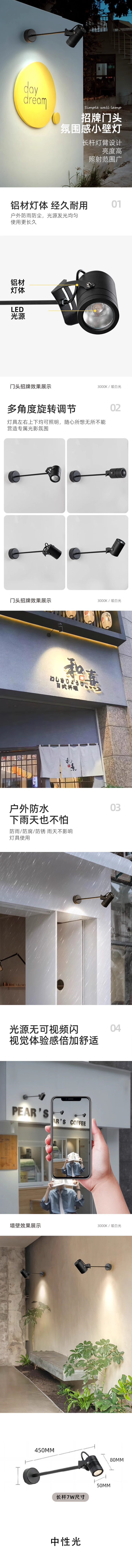 海斯迪克 射灯 HPSC003 长臂款-小号-7W 90*58*95mm中性光 1个
