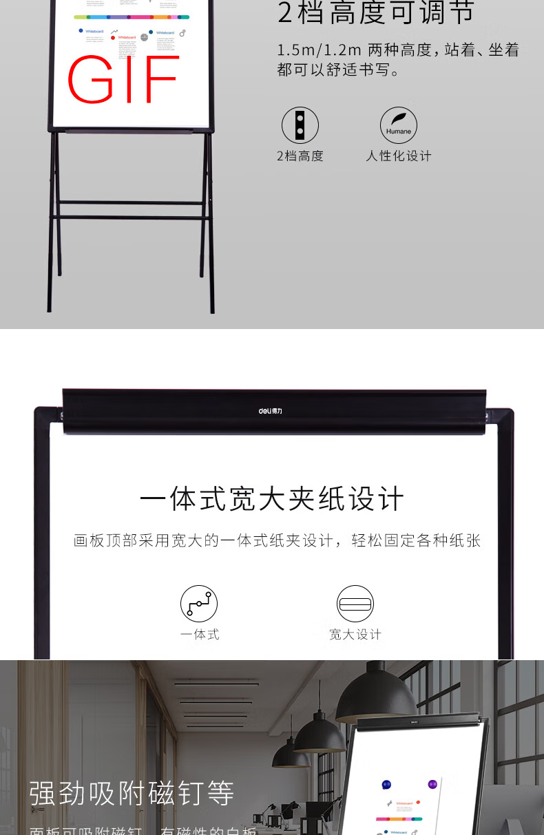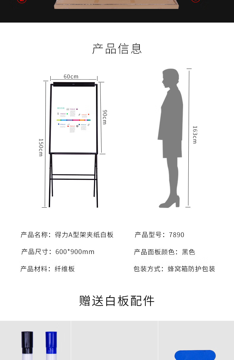 得力 A型架夹纸白板 7890 900*600mm 1块