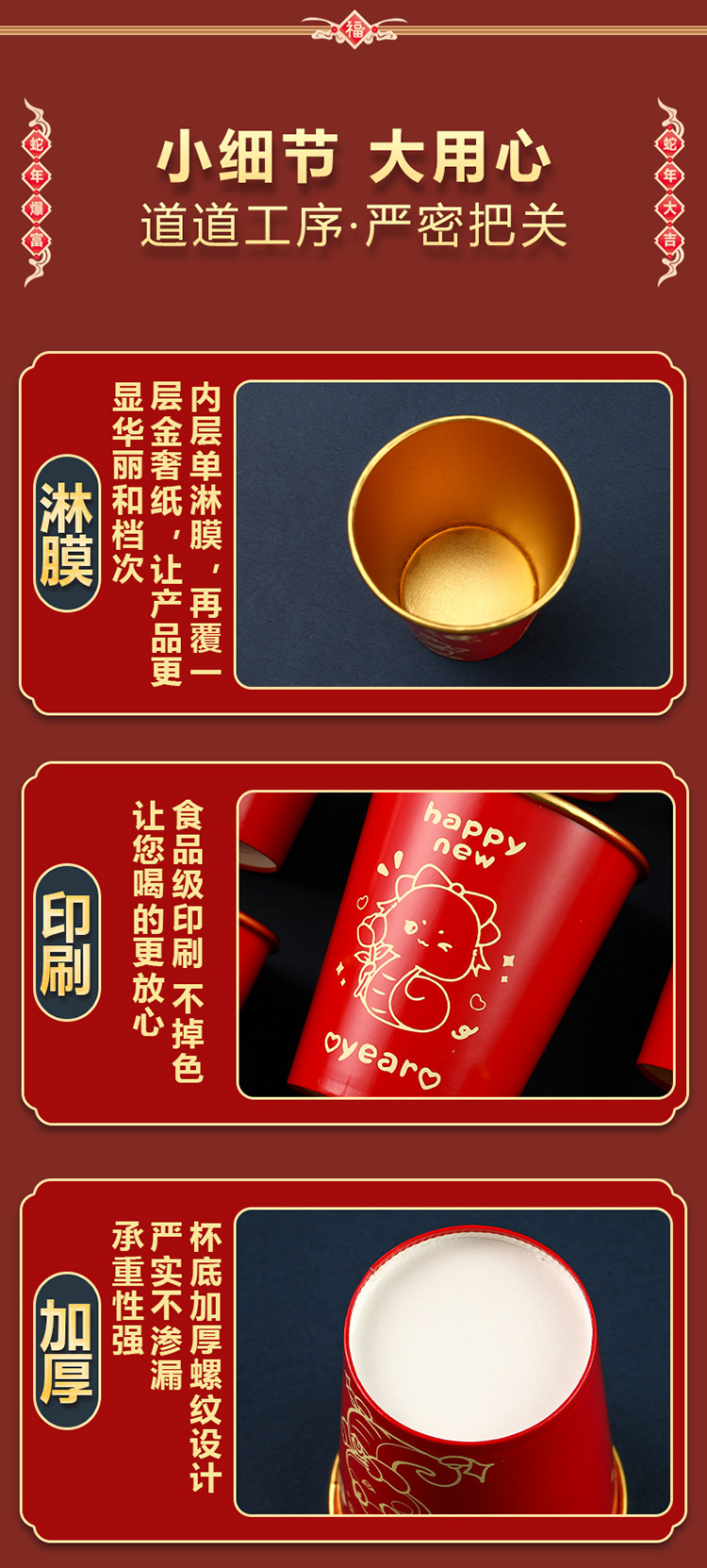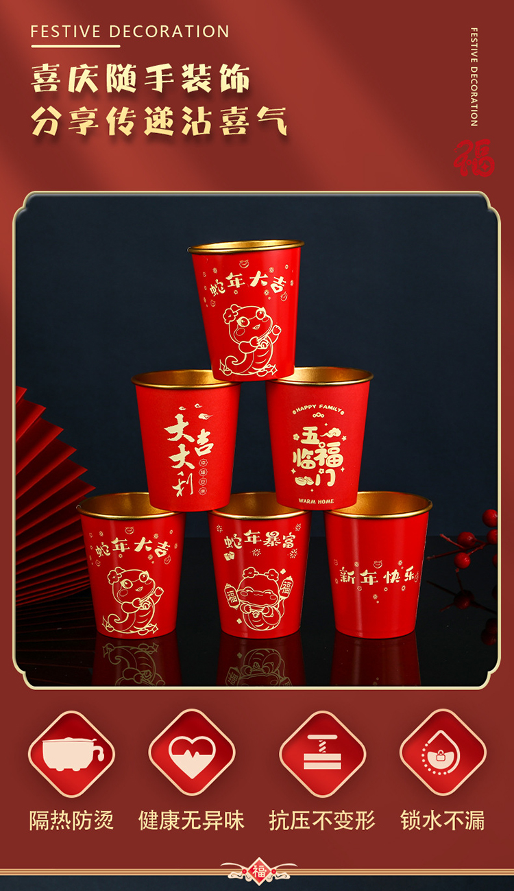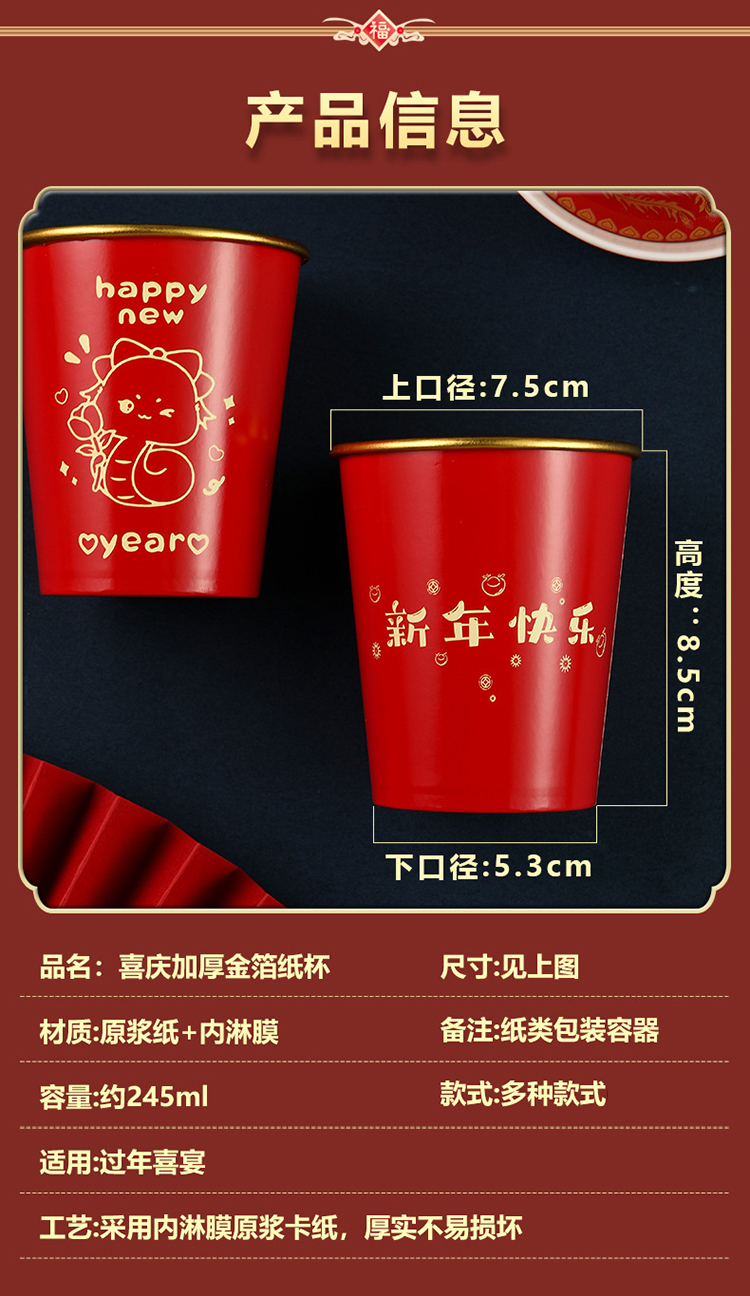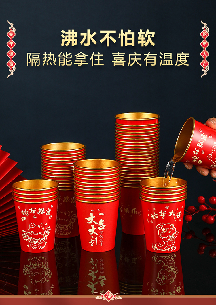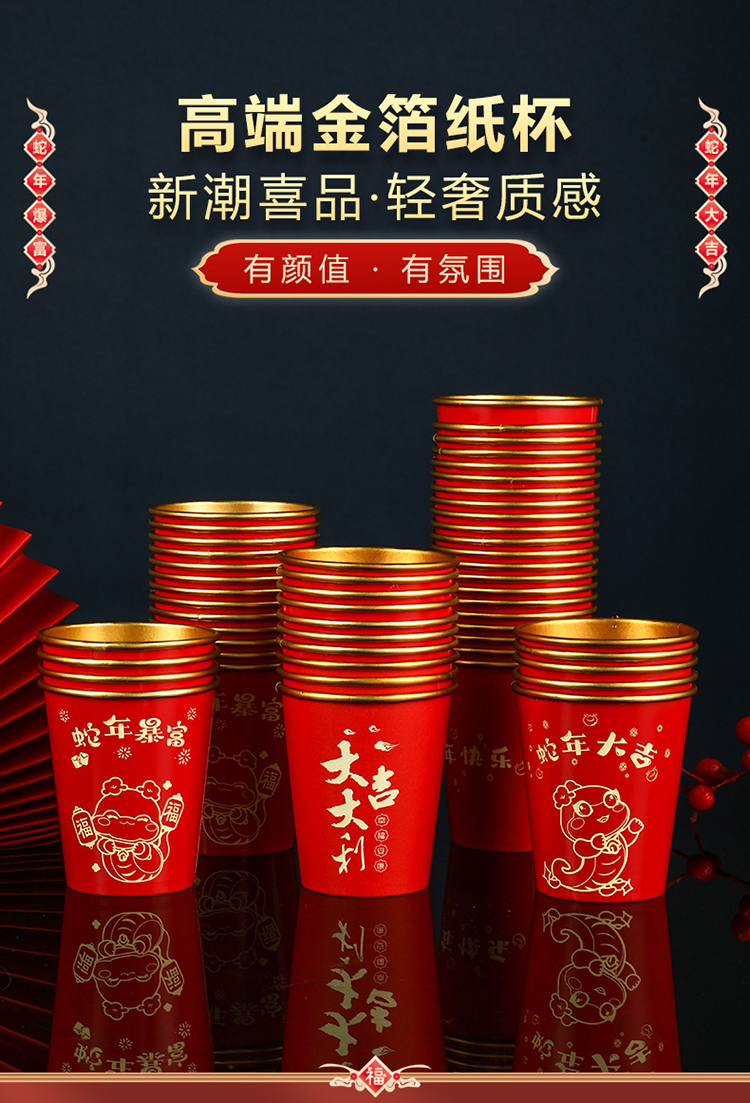 海斯迪克 一次性金箔纸杯 hsxy165 蛇年暴富 50个 1件