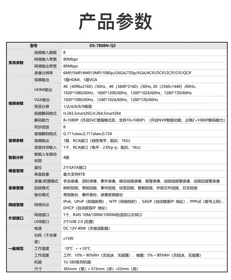 海康威视 智惠Q系列2盘位录像机 DS-7808N-Q2(标配) 2盘位 1台