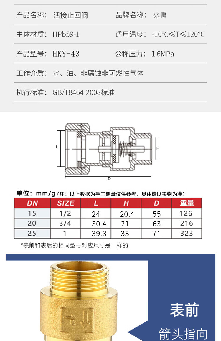 冰禹 黄铜水表伸缩止回阀 BYyc-172 表前 DN25 1个