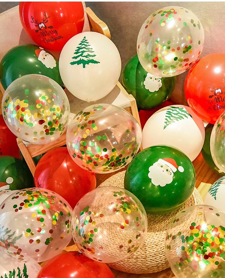 海斯迪克 圣诞节创意气球装饰 hsxy269 【卡通圣诞亮片混】+丝带胶点打气筒 100个 1件