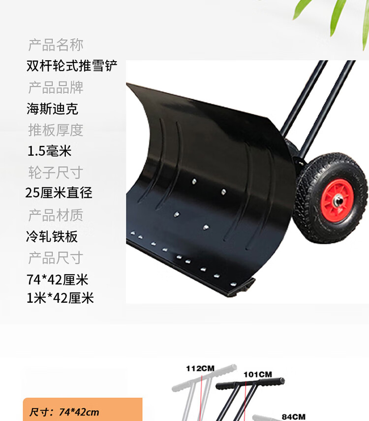 海斯迪克 手推式推雪铲 GY-513 双杆100*42cm大号 1个