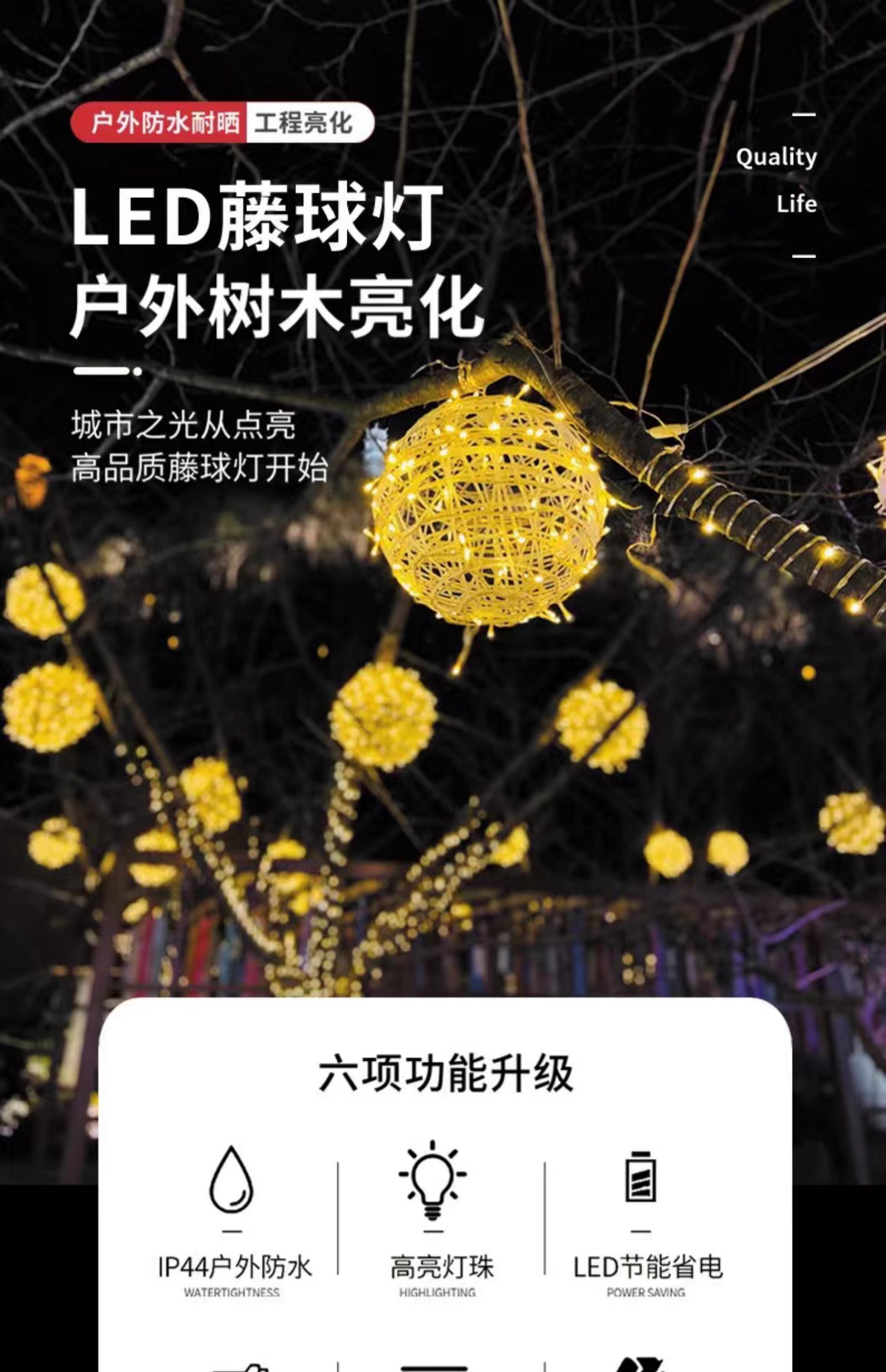 豪牧匠 LED藤球灯 黄色 Φ20cm 接电款 1个