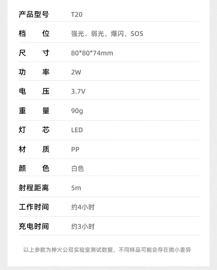 神火 地摊灯 T20 2W 80*80*74mm 1个