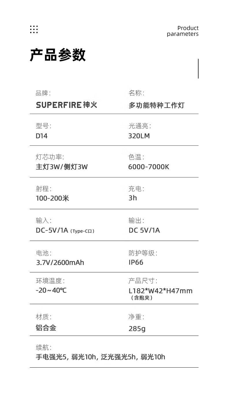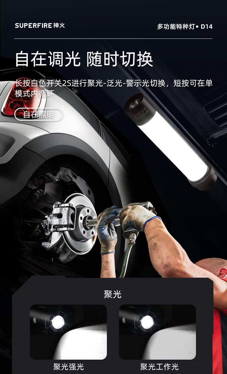 神火 多功能特种灯 D14 3W+3W L182*W42*H47mm(含抱夹) 1个