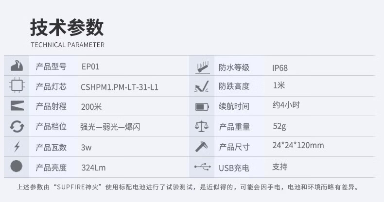 神火 多档位防爆手电 EP01 3W 24*24*120mm 1个