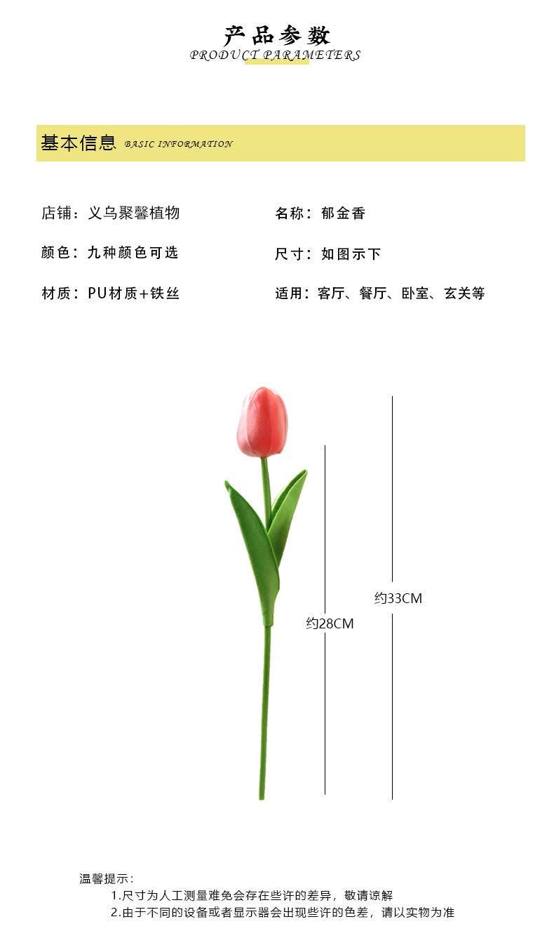 聚馨 仿真PU郁金香 黄色 1支