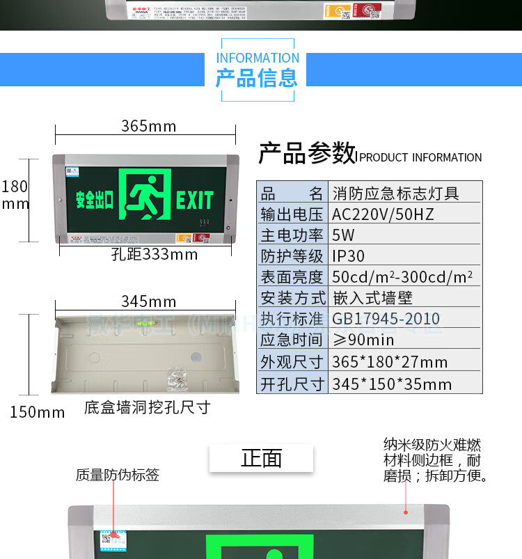 敏华电工 紧急疏散指示灯 M-BLZD-1LROEⅠ5WCAC 嵌入式 双向 1台
