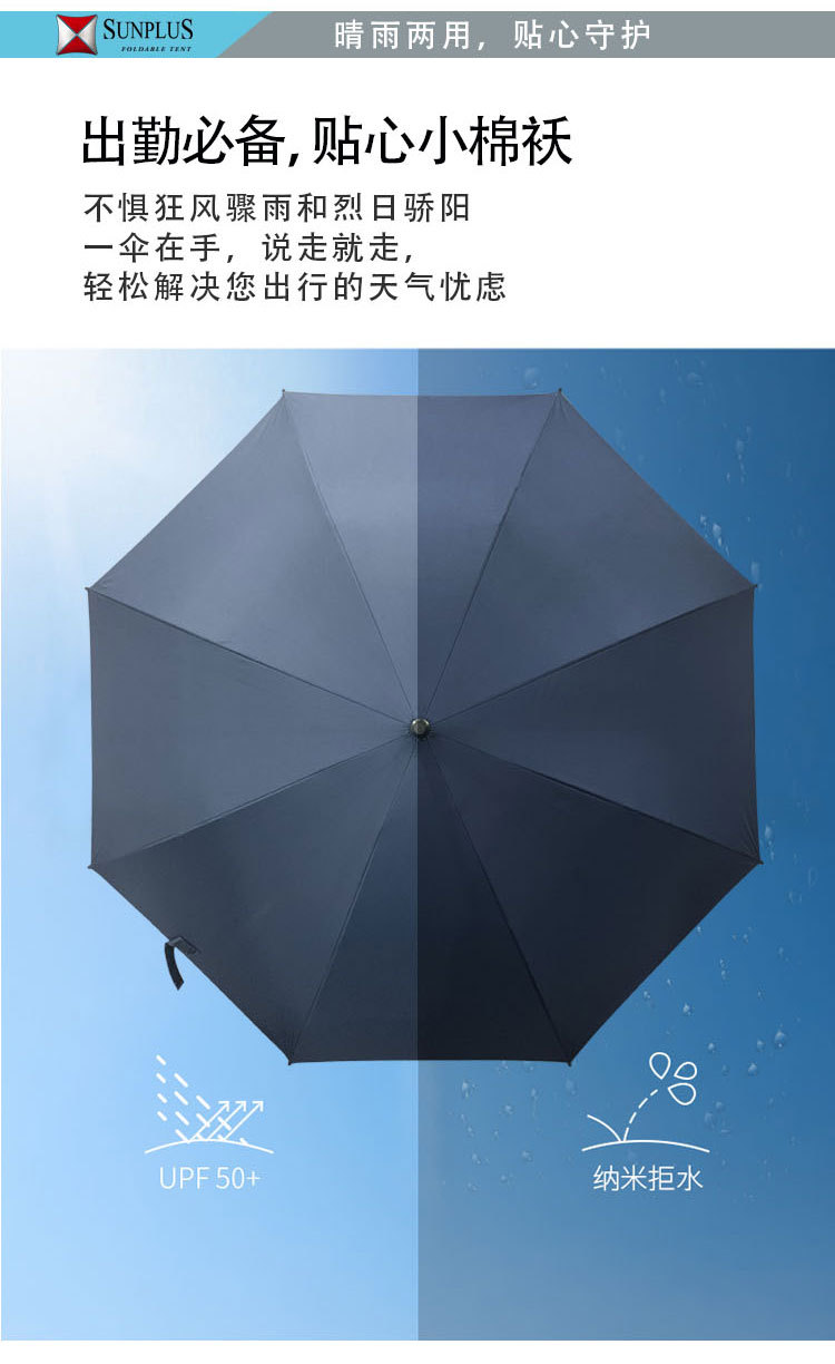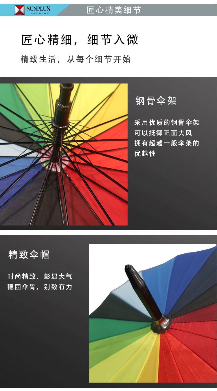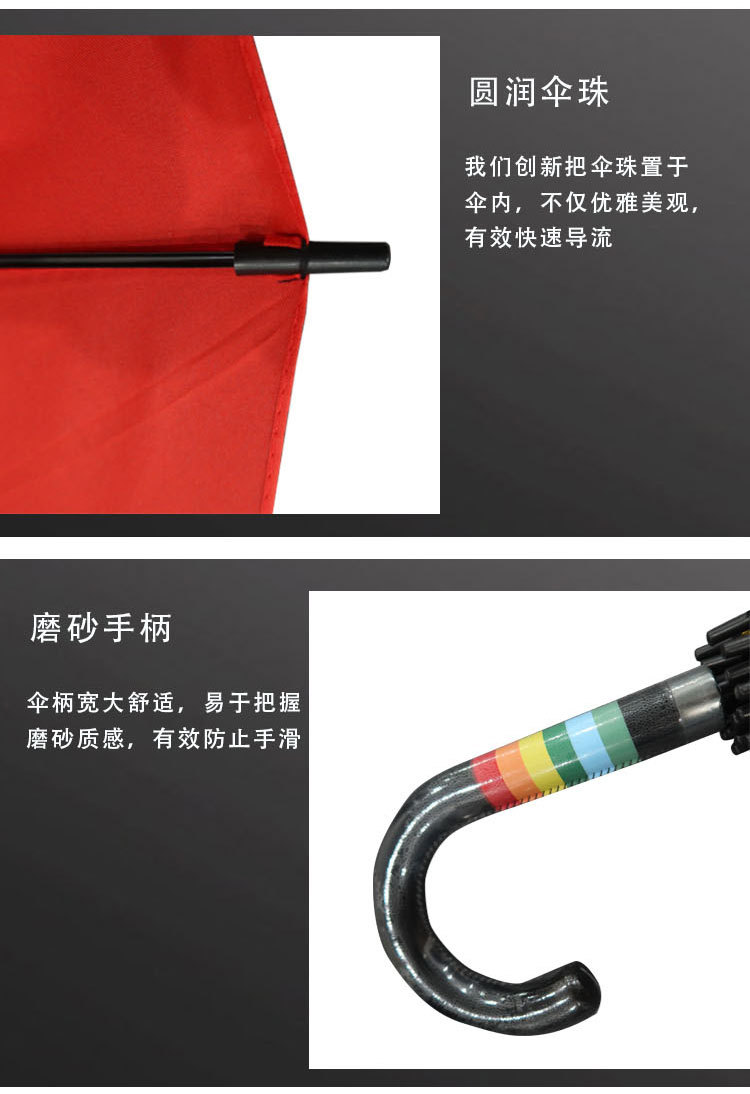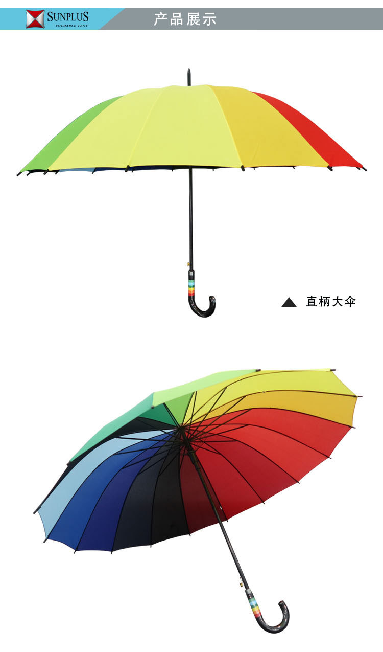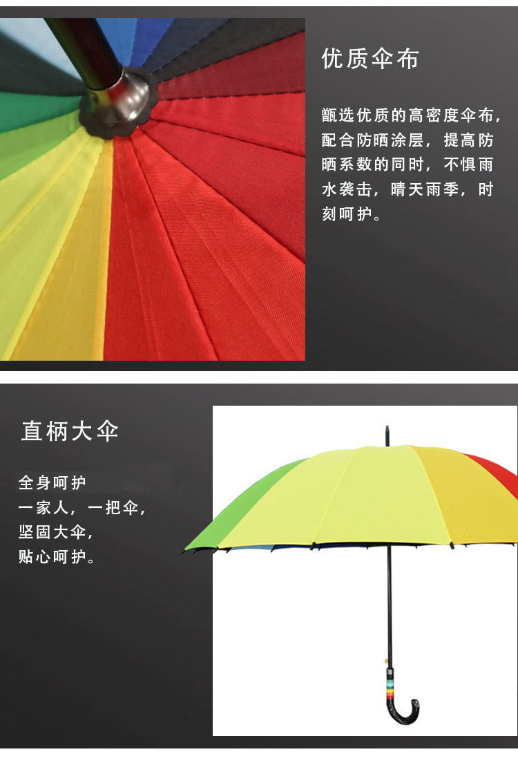粤汉 彩虹简约时尚遮阳伞 27寸 16骨弯柄大伞 1把