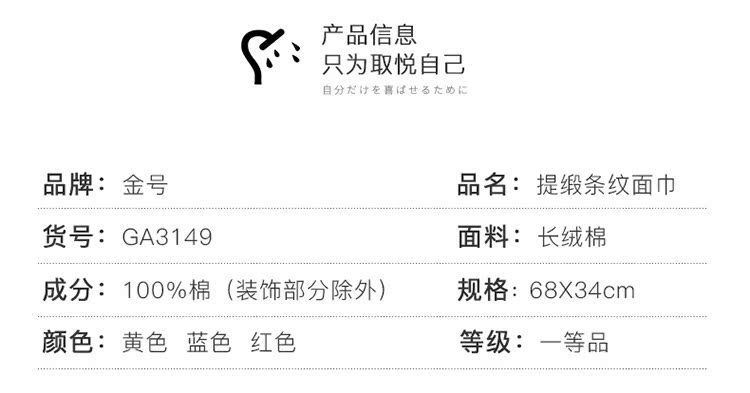 金号 赤金纯棉浴巾 GA3149 蓝色 130*62cm 280g 1条