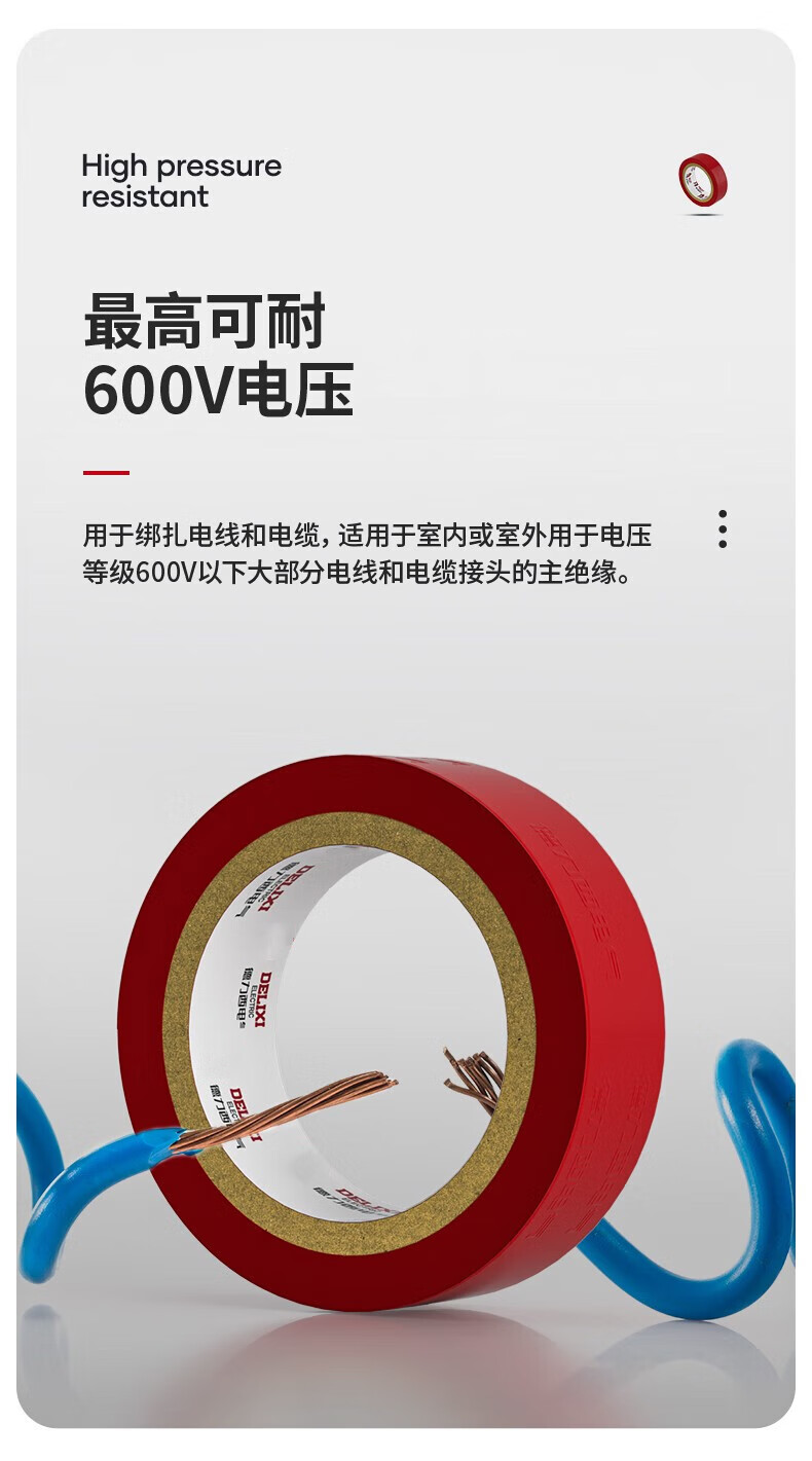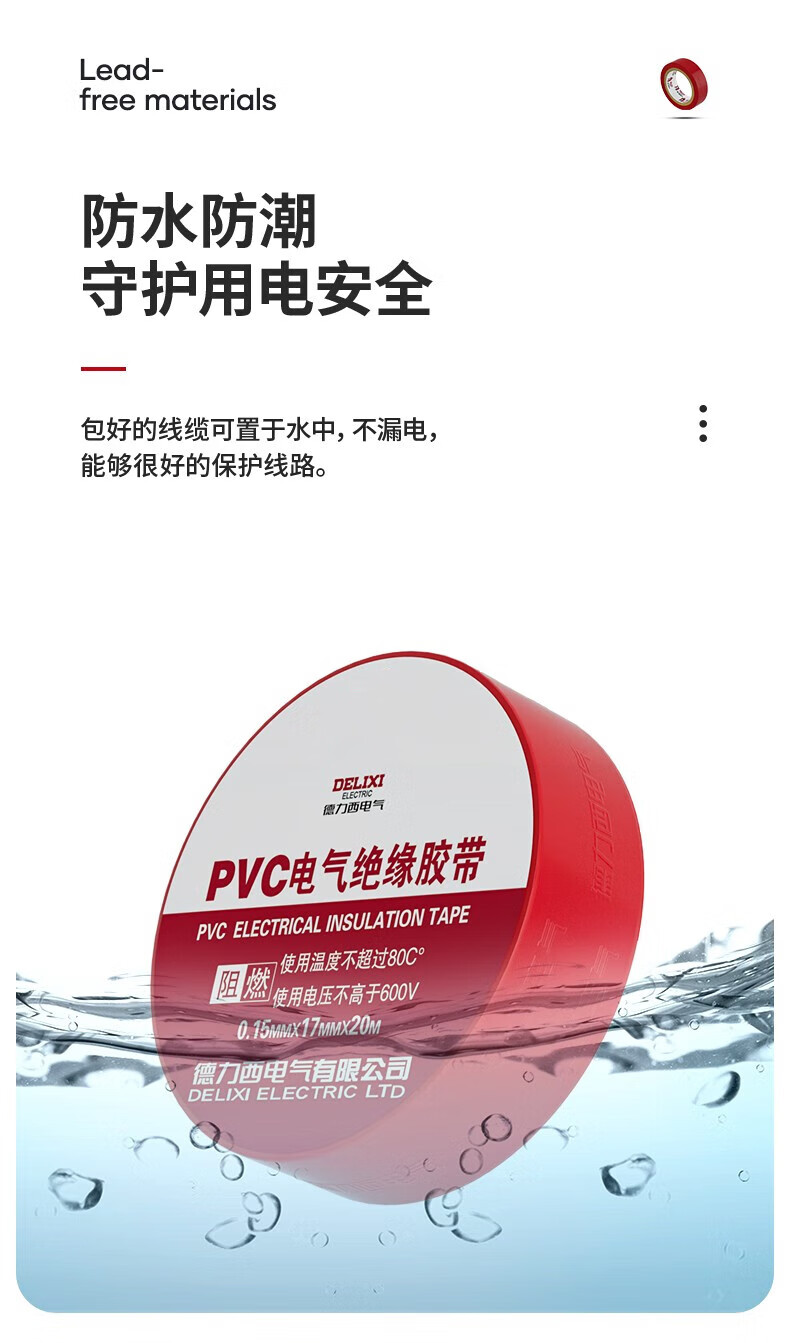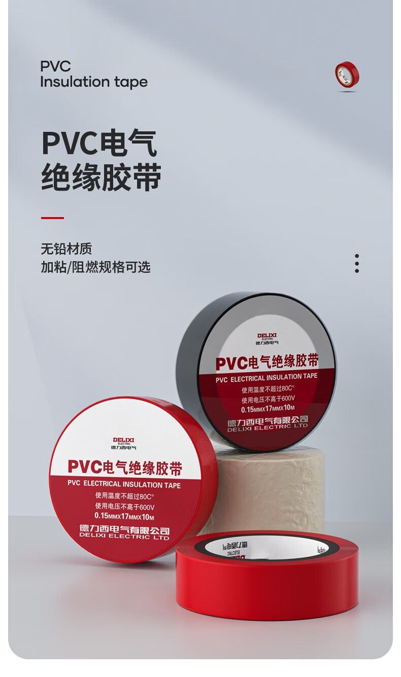 德力西电气 PVC电气胶带 PVCPT0151710B 0.15*17mm 10米 黑色 1卷