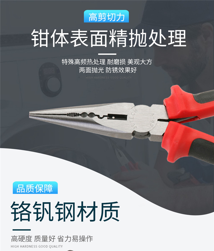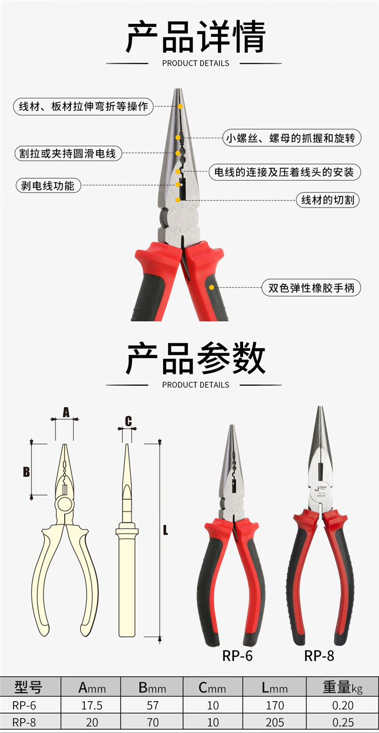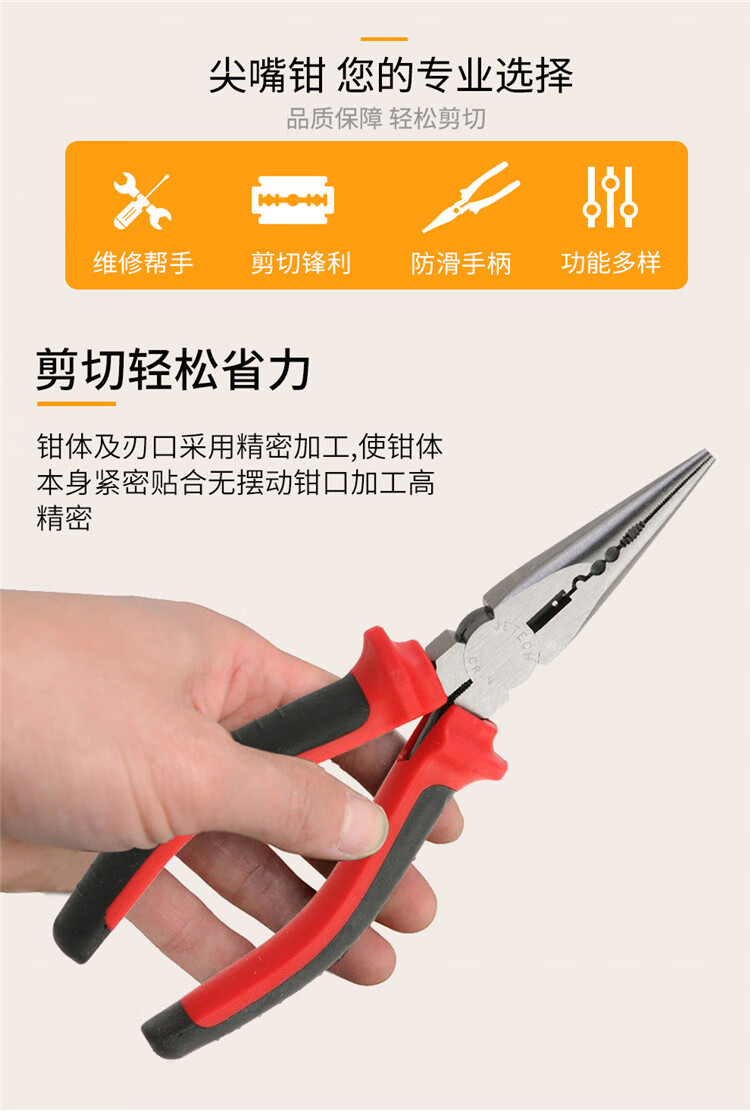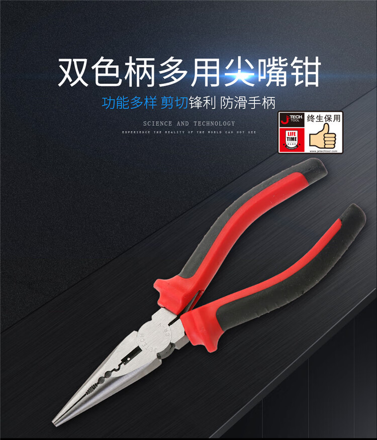 捷科 双色柄多用尖嘴钳 RP-6 铬钒钢 精抛 1把