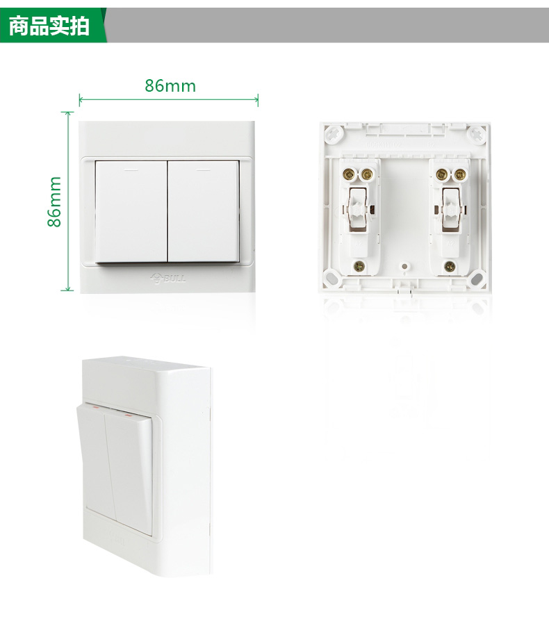 公牛(BULL)G09系列 明装开关插座 二位双控带荧光开关 G09K212Y 10A 250V 1个