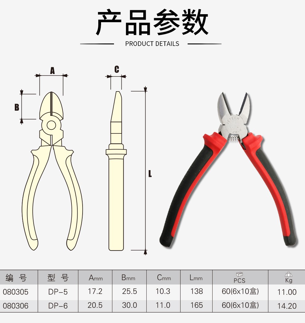 捷科 省力型斜嘴钳 DP-6E 铬钒钢 1把