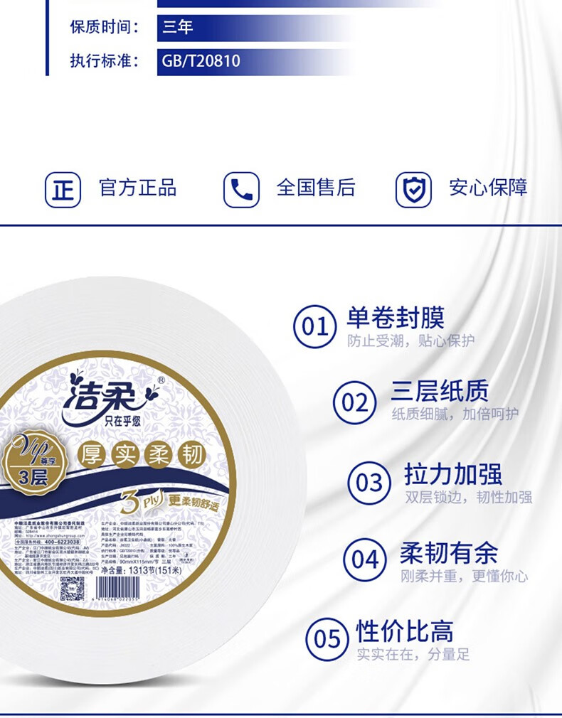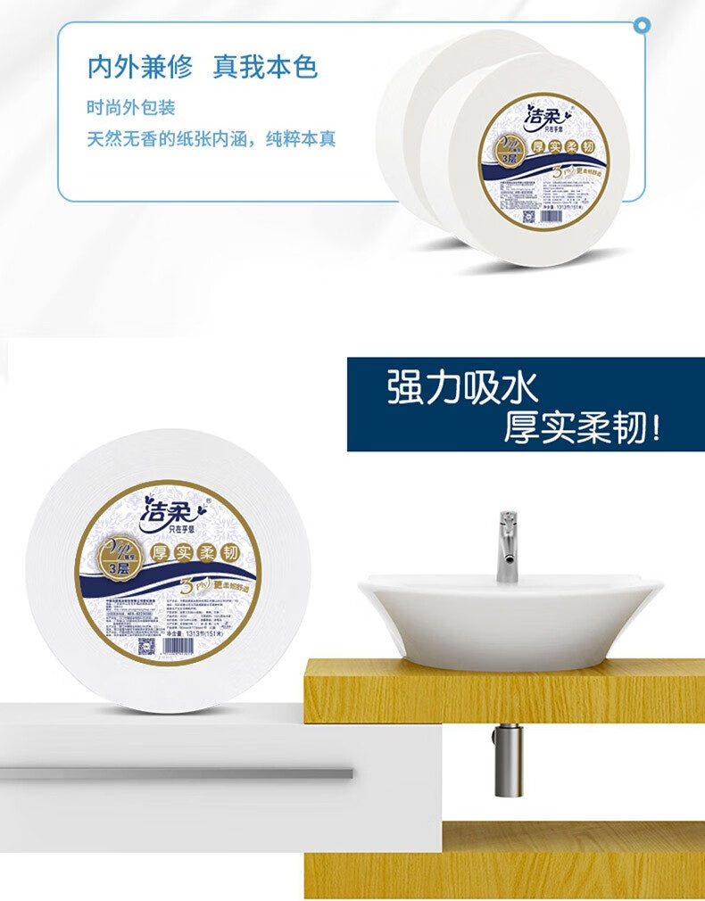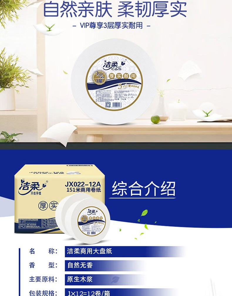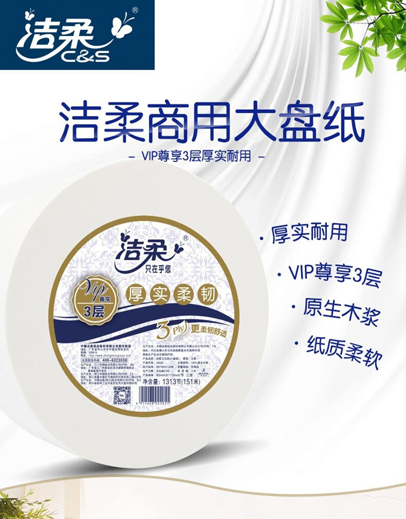 洁柔 柔韧商用大盘纸 JX022-12A 3层 1313节 151m 12卷 1箱