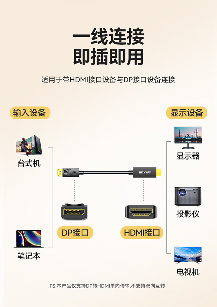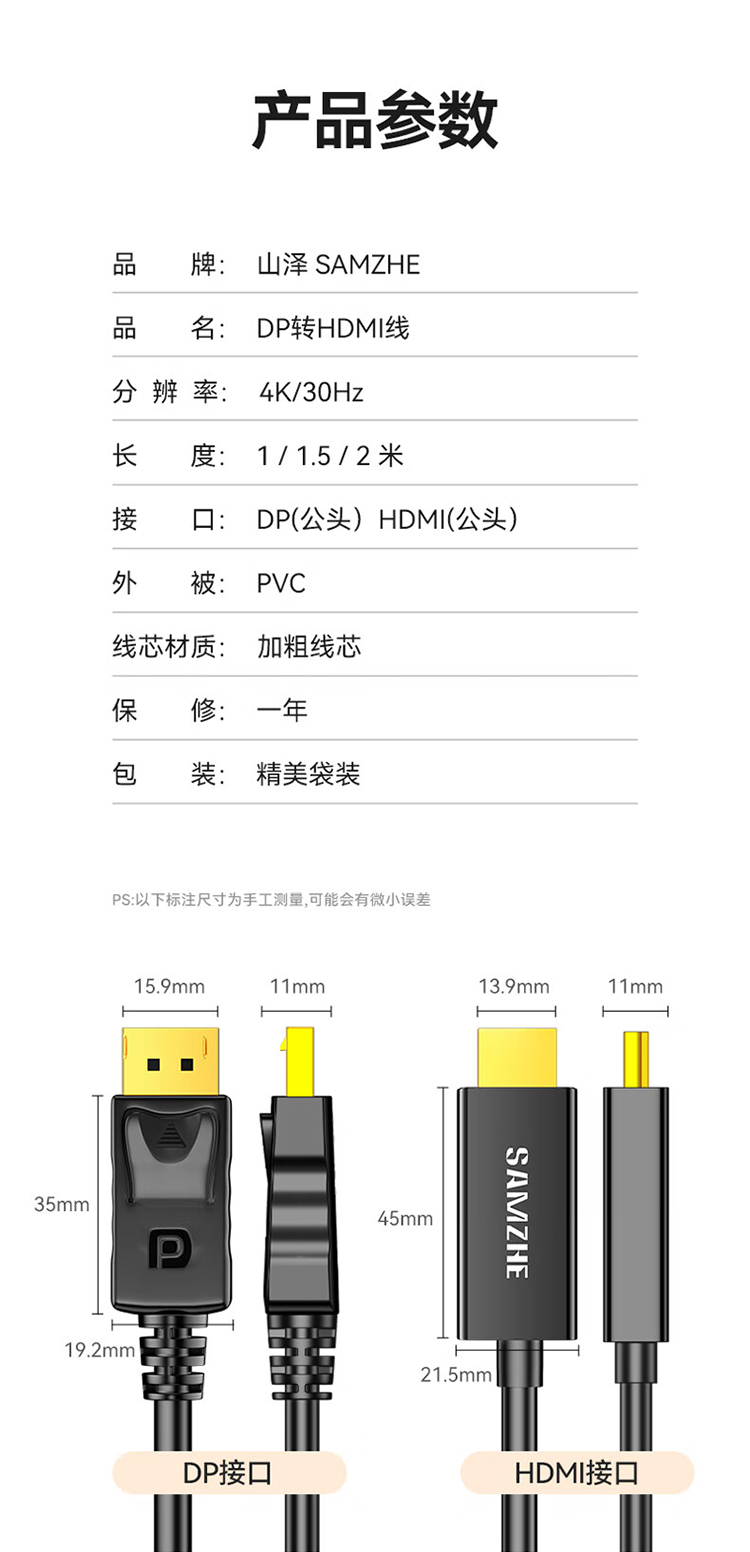山泽 DP转HDMI转换线 DH1020 黑色 2米 1根
