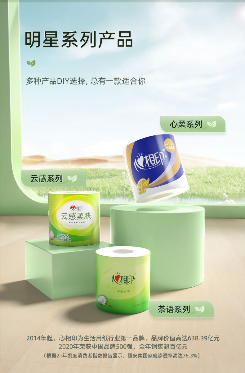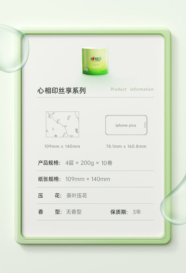 心相印 茶语系列卷筒纸 BT2610 四层 109×140mm 200g 27卷 1箱