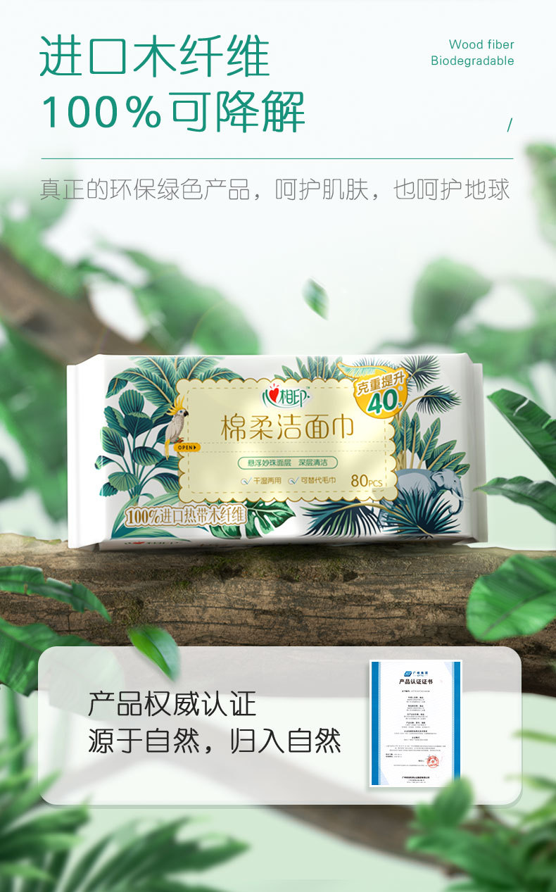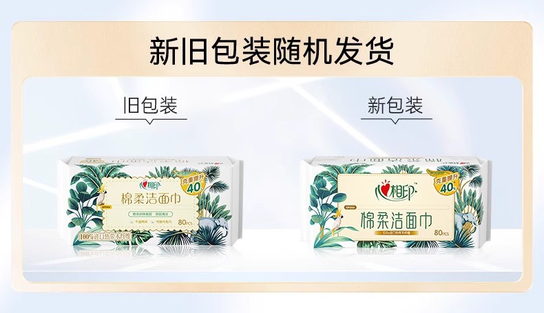 心相印 棉柔系列洗脸巾 6XCD080 200×200mm 80抽 6包 1件