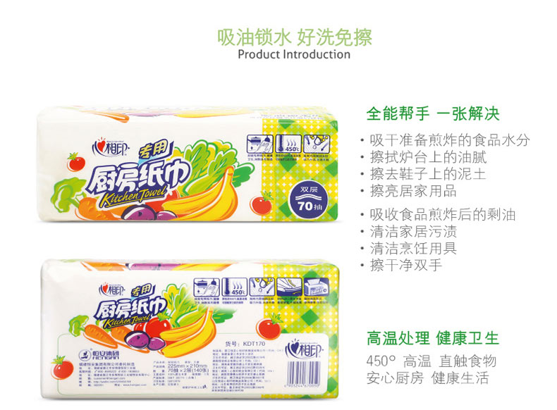 心相印 厨房用纸系列软抽 DS-KDT170-1X 2层 210×225mm 70抽×3包 4提 1件