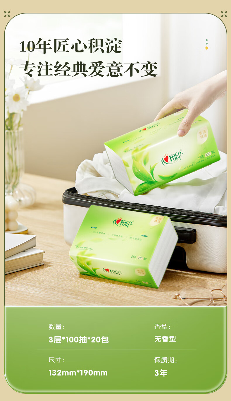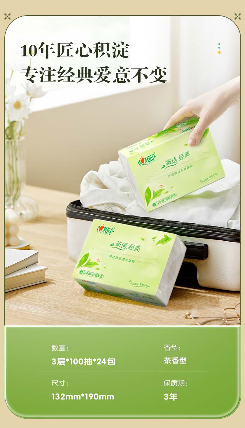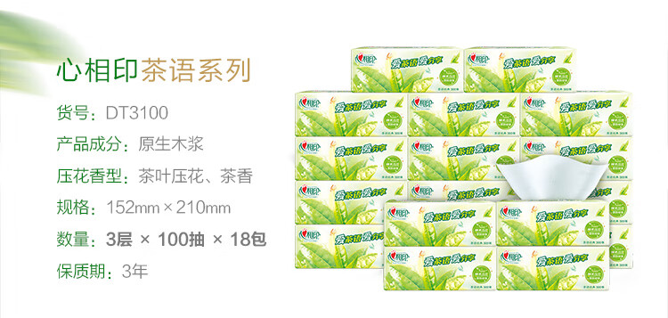 心相印 茶语系列大尺寸压花抽纸 DT5100-24 190×132mm 100抽 24包 1箱