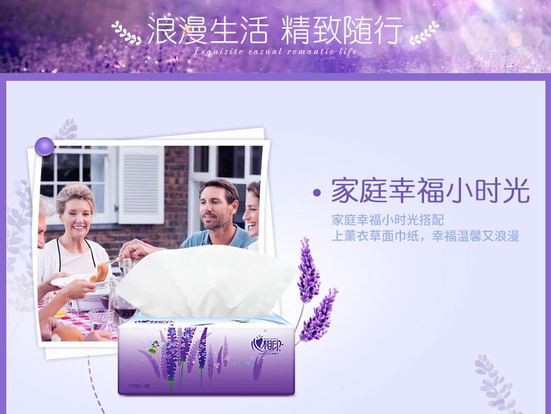 心相印 商用软抽薰衣草香 DT100 125×180mm 100抽 60包 1箱