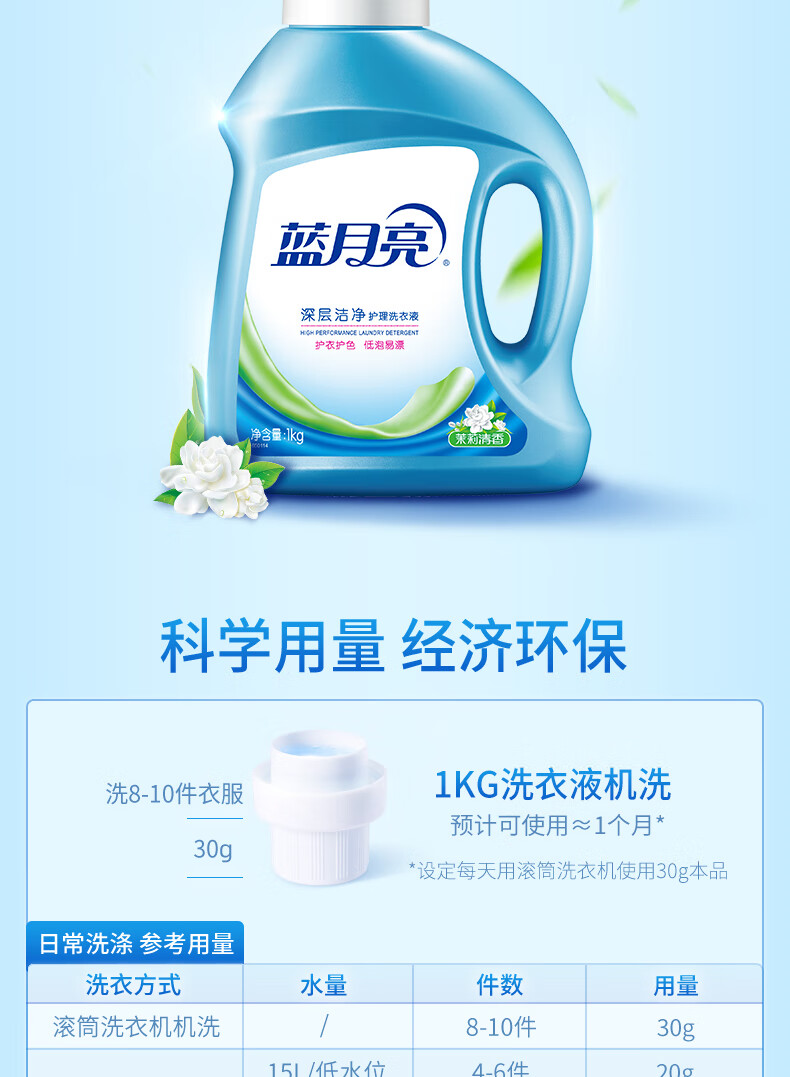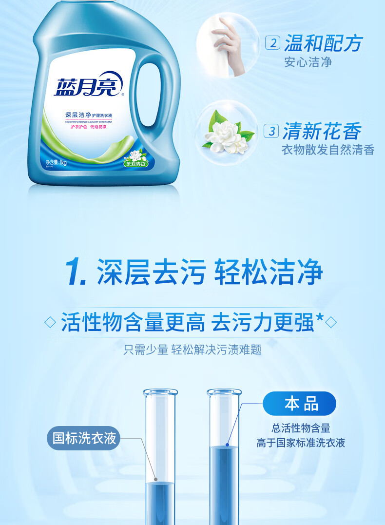 蓝月亮 茉莉清香洁净洗衣液瓶装 1kg 12瓶 1箱