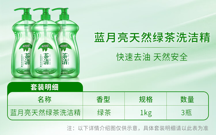 蓝月亮 茶清天然绿茶洗洁精 1kg 3瓶 1套