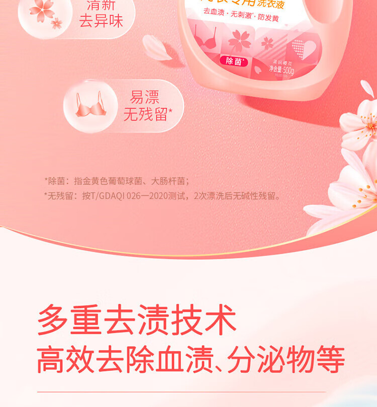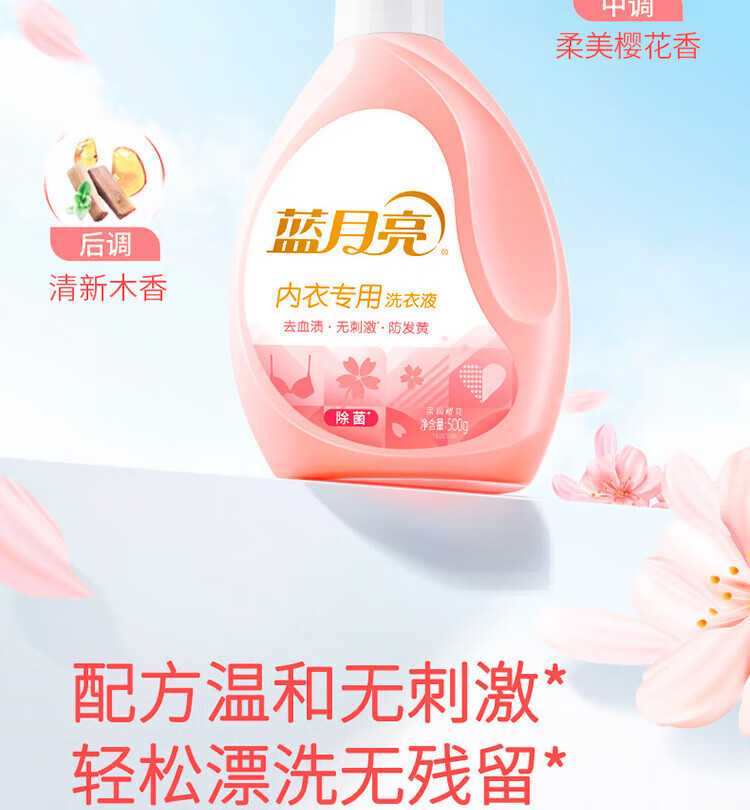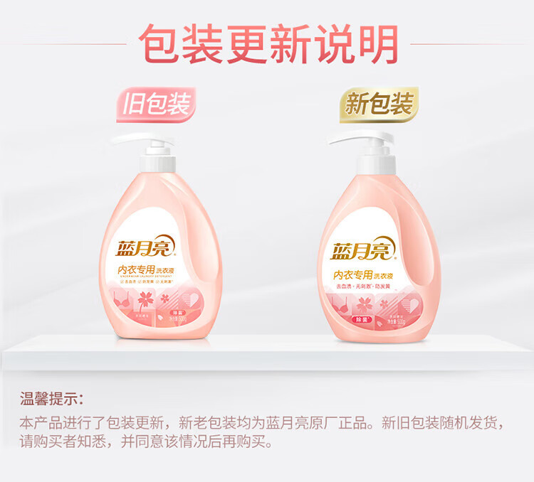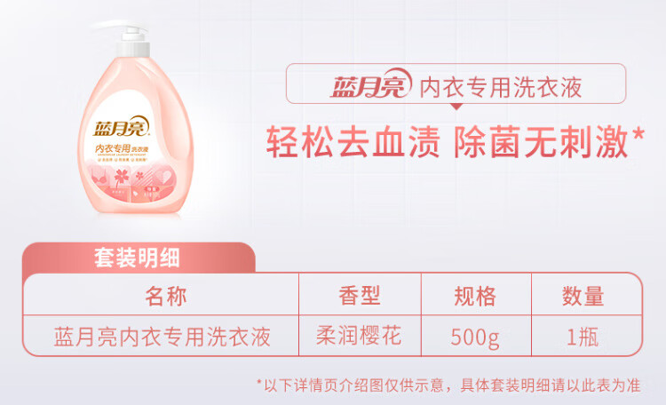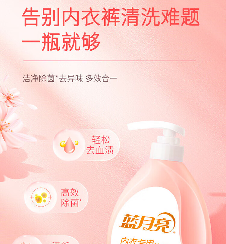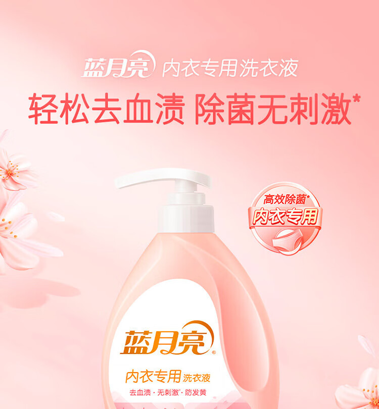 蓝月亮 柔润樱花内衣专用洗衣液 泵装500g*2+旅行装80g*2 4瓶 1套